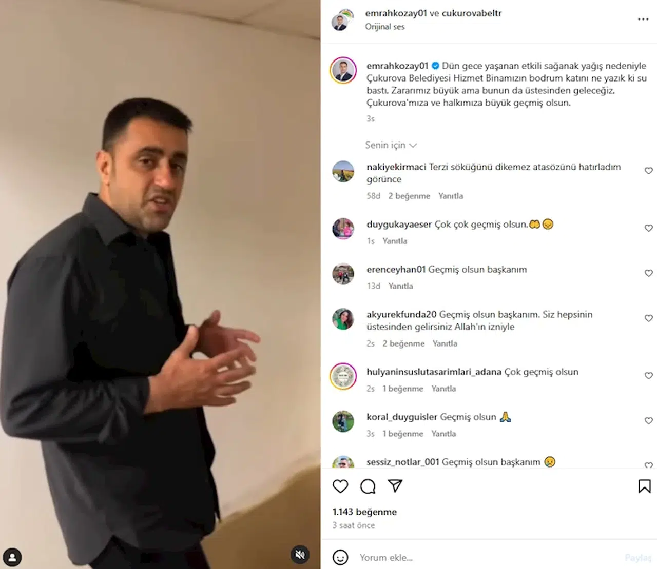 ADANA, (DHA- ADANA’nın merkez Çukurova ilçesinde dün akşam etkili olan sağanak yağışta Çukurova Belediyesi’nin hizmet binasını da sel suyu bastı. Belediyenin resmi hesabından paylaşılan görüntüde su basan bodrum katını gezen Başkanı Emrah Kozan, “Maalesef belediyemizin son durumu bu” dedi.