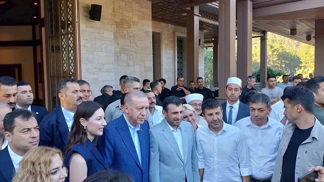 Cumhurbaşkanı Erdoğan, cami çıkışında vatandaşlar ile bayramlaşarak, hatıra fotoğrafı çektirdi. DHA)
