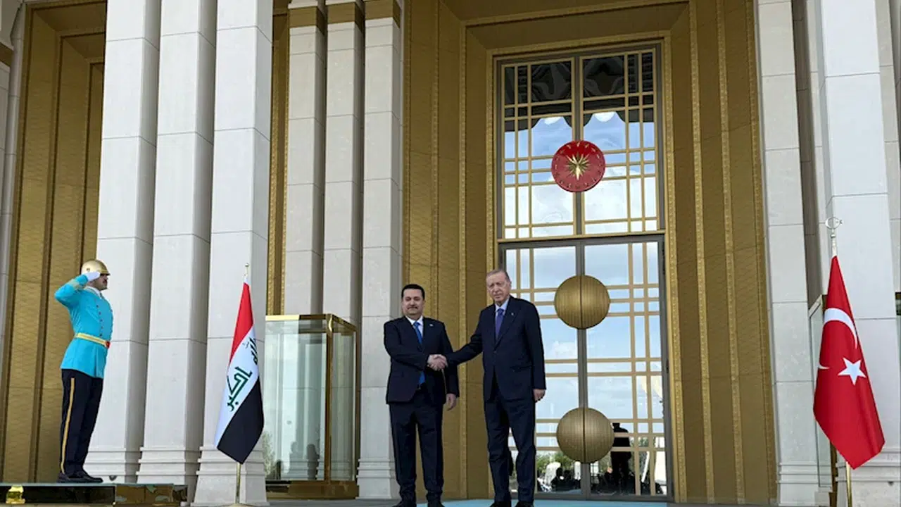 Cumhurbaşkanı Erdoğan ve Sudani'nin, tören alanında yerlerini almalarının ardından iki ülkenin milli marşları çalındı. Tören alanında Cumhurbaşkanlığı Muhafız Alayı, tüfekli gösteri gerçekleştirdi. Türkiye ve Irak bayrakları önünde poz veren Cumhurbaşkanı Erdoğan ve Sudani, daha sonra Külliye'deki salona geçti.