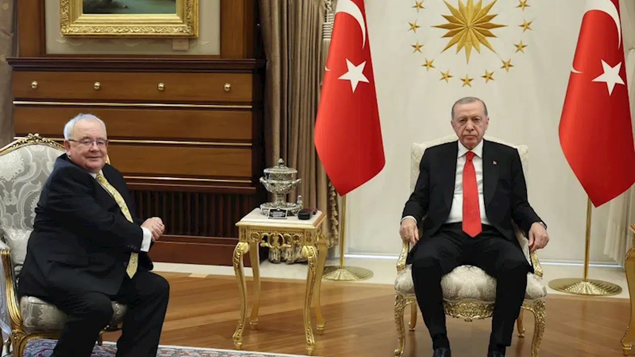 Cumhurbaşkanı Erdoğan, İrlanda Meclis Başkanı Fearghail'i Cumhurbaşkanlığı Külliyesi'nde kabul etti. Görüşmede, TBMM Başkanı Numan Kurtulmuş da yer aldı. Basına kapalı gerçekleşen görüşmenin ardından açıklama yapılmazken, Cumhurbaşkanlığı'ndan fotoğraf paylaşıldı. (DHA)