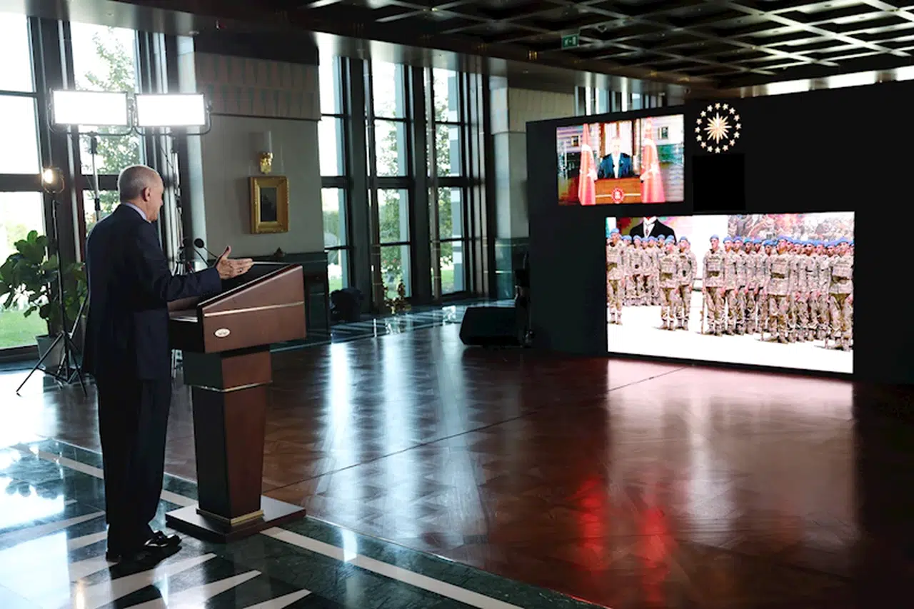 Erdoğan, eğitimini başarıyla tamamlayan askerleri tebrik ederek, "Sizler yalnızca ülkemizin caydırıcı gücü değil, bölgemizin barış, refah ve güvenliğinin de teminatısınız. Kaderini Türkiye'nin kaderiyle birleştirmiş, ümidini bu ülkenin geleceğine bağlamış mazlumlar için de mücadele eden birer çelik pençesiniz. Zalime yavuz, mazluma yunussunuz. Gerek ülkemizde gerek sınırlarımızda gerekse yurt dışında ordumuza yakışır şekilde görev yapacağınızdan en küçük bir şüphe duymuyorum. Sizlere güveniyorum" ifadelerini kullandı. (DHA)