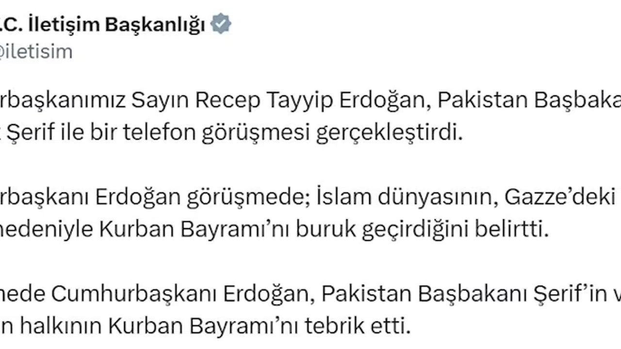 İletişim Başkanlığı’ndan yapılan açıklamaya göre; Cumhurbaşkanı Recep Tayyip Erdoğan, Pakistan Başbakanı Şahbaz Şerif ile telefonda görüştü.