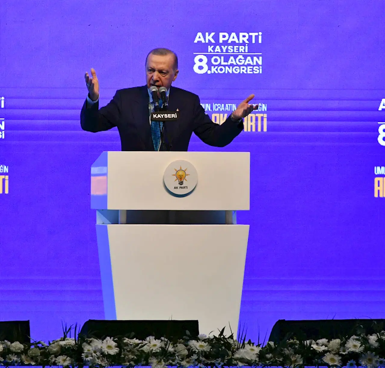 Cumhurbaşkanı ve AK Parti Genel Başkanı Recep Tayyip Erdoğan, Konya’daki programlarının ardından AK Parti Kayseri 8'inci Olağan Kongresi için Kayseri'ye geldi. Kadir Has Spor Salonunda düzenlenen kongrede konuşan Erdoğan, "Milletimize hizmet yolculuğumuzda unutmayın Kayseri her zaman yanımızda oldu. Azmiyle, emeğiyle, hayır dualarıyla Kayserili kardeşlerimiz desteklerini bizden asla esirgemedi. Kayseri'yle omuz omuza yürümekten hep şeref duyduk. Siz bizi mahcup etmediniz. Elhamdülillah biz de sizlere mahcup olmadık. Kayseri'ye aşkla hizmet yolundan bir an olsun ayrılmadık. Allah izin verdiği, siz de arkamızda olduğunuz müddetçe Kayseri için üretmeye, Kayseri'ye aşkla hizmet etmeye sizlerle birlikte milletimizin hizmetkarı olmaya inşallah devam edeceğiz. Son 22 yılda sayısız defa geldiğimiz Kayseri'de bugün de il kongremizi gerçekleştirmek üzere bulunuyoruz" diye konuştu.