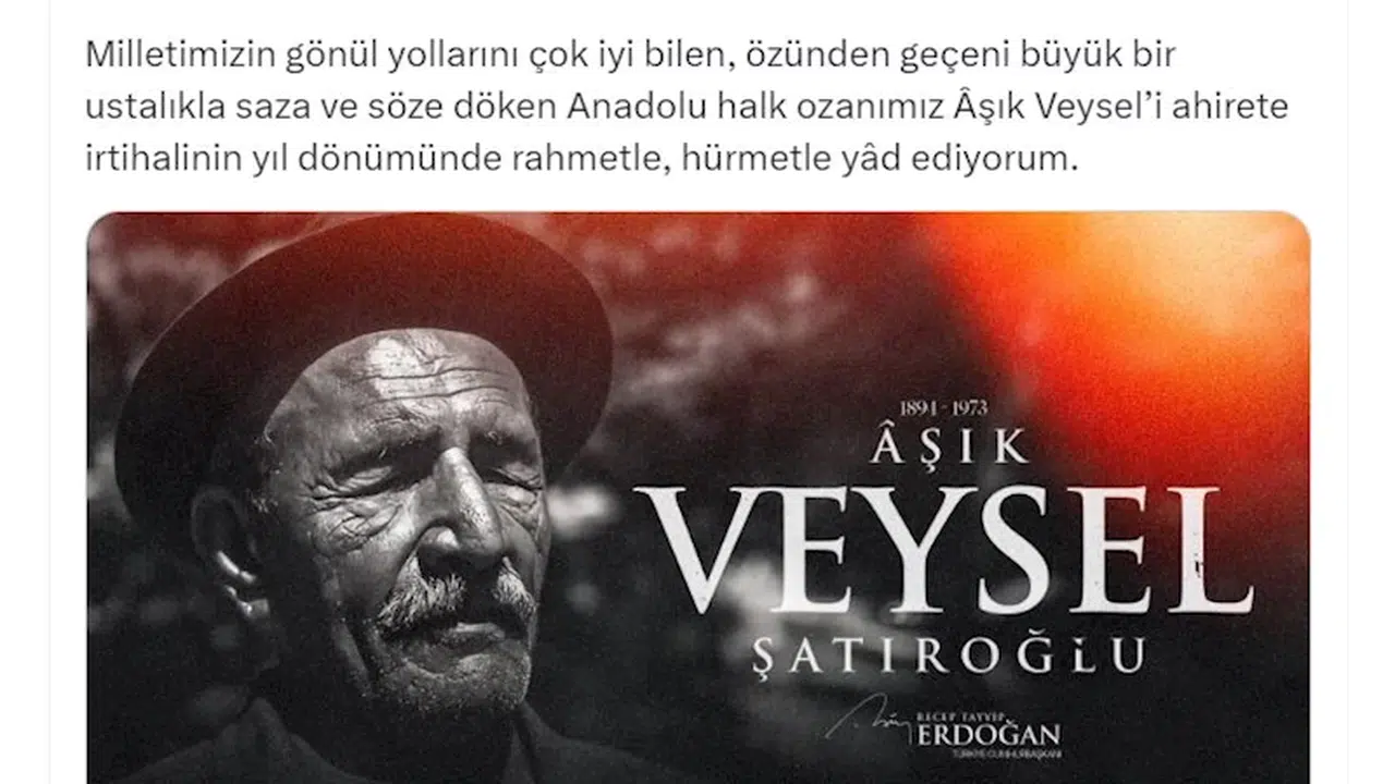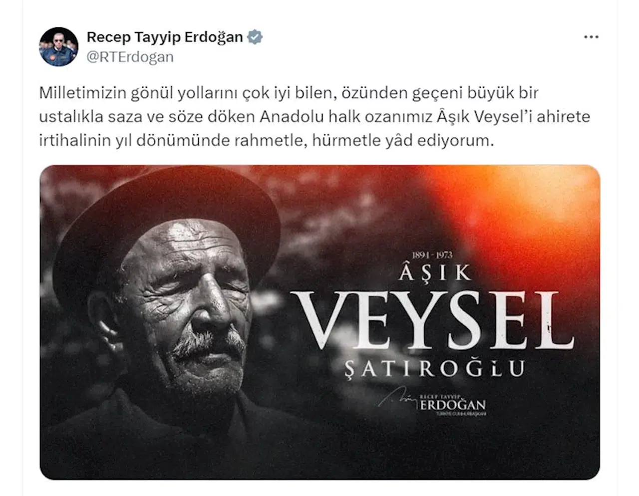 Cumhurbaşkanı Erdoğan'dan 'Aşık Veysel' paylaşımı
