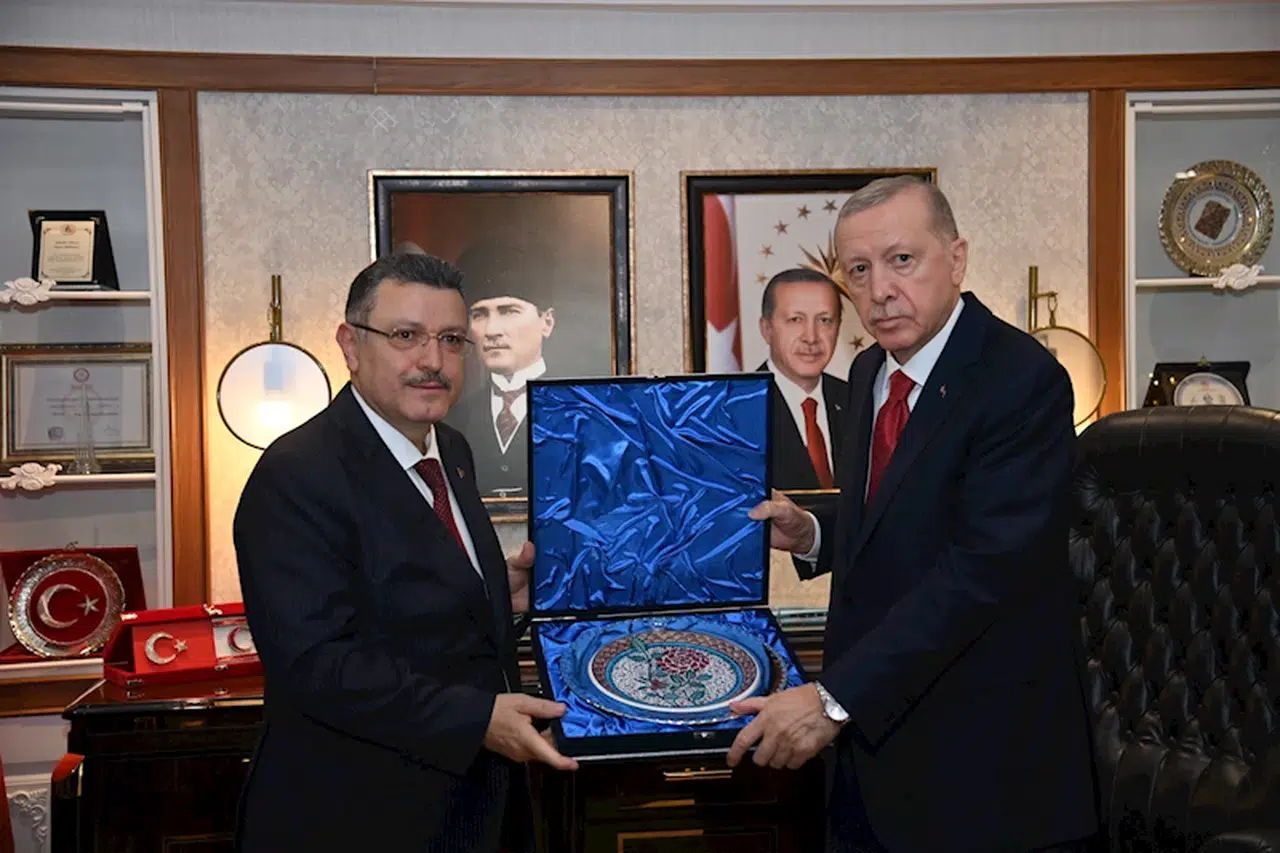 Cumhurbaşkanı Recep Tayyip Erdoğan, Trabzon Büyükşehir Belediyesi'ni ziyaret ederek Başkan Ahmet Metin Genç'ten şehirdeki yatırımlar hakkında bilgi aldı. Başkan Genç, şehrin geleceğini şekillendirecek Hafif Raylı Sistem, Uzunkum Yaşam Alanı, Küçük Sanayi Sitelerinin Taşınması, İleri Biyolojik Arıtma Tesisi, Çömlekçi Kentsel Dönüşüm, Pazarkapı Yaşam Alanı ve Engelsiz Yaşam-Otizm Merkezi projeleri ile ilgili Cumhurbaşkanı Erdoğan'a sunum yaptı.