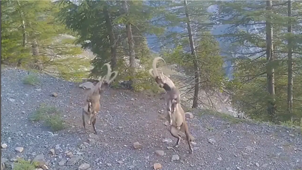 Taha AYHAN/ANKARA, (DHA)- DOĞA Koruma ve Milli Parklar (DKMP) Genel Müdürlüğü, dağ keçilerinin fotokapana yansıyan üstünlük kavgası görüntülerini paylaştı.