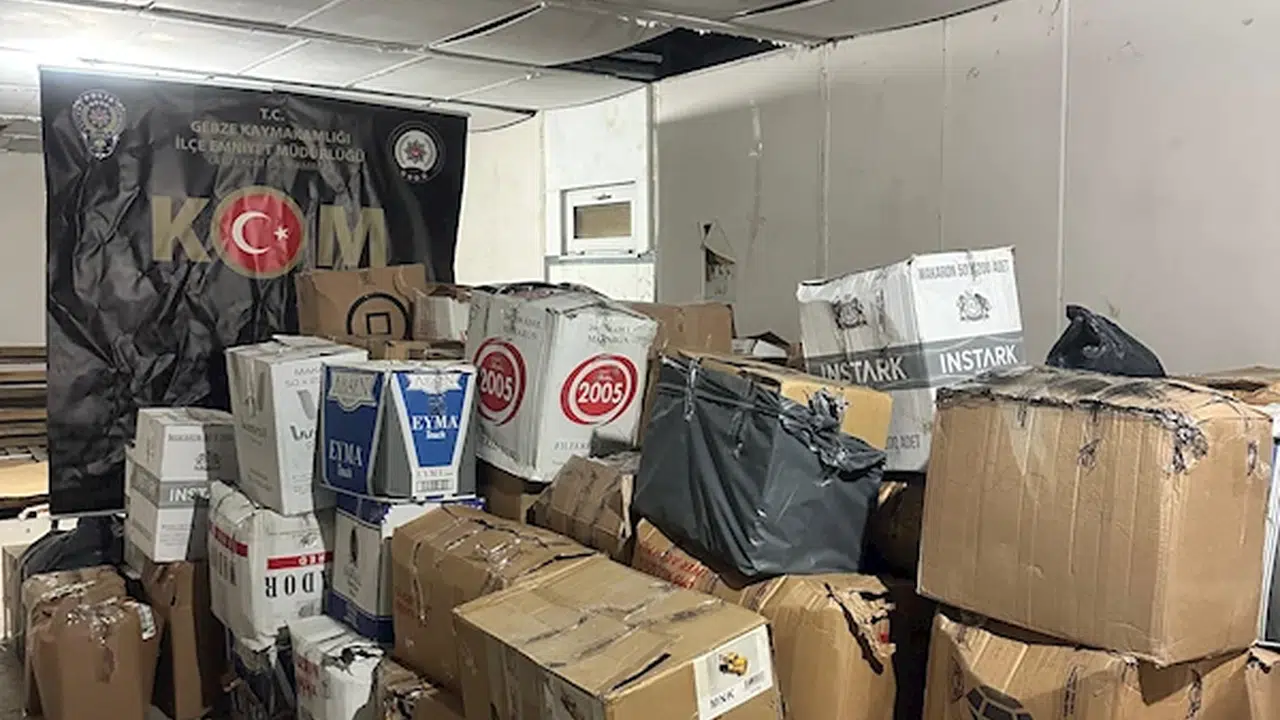 Kocaeli Emniyet Müdürlüğü Kaçakçılık ve Organize Suçlarla Şube Müdürlüğü tarafından yapılan çalışmalar kapsamında Gebze ve Darıca ilçelerinde bulunan 2 işyeri, 1 ev ve 1 depoda arama yapıldı. Yapılan aramalarda kaçak olduğu değerlendirilen 776 bin 500 adet dolu makaron, 116 bin 400 adet bandrolsüz boş makaron, 3 bin 200 adet sökülmüş vaziyette Tütün ve Alkol Piyasası Düzenleme Kurumu (TAPDK) bandrolü, 480 kilogram kıyılmış tütün, 66 kilogram nargile tütünü, 435 paket gümrük kaçağı sigara, 8 şişe gümrük kaçağı işçi, 13 adet elektronik sigara ve 98 bin yaprak sigara sarma kağıdı ele geçirildi. 4 kişi hakkında Kaçakçılıkla Mücadele Kanunu’na muhalefet suçundan adli işlem yapıldı. (DHA)