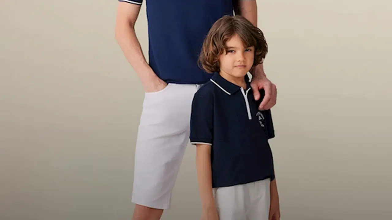 Koleksiyonda, baba-çocuk kombinleri de beğeniye sunuldu. Çocuklar, koleksiyonda yer alan gömlek-şort takımlar, polo yaka tişörtler ile babalarıyla giysilerinde de uyumu yakalayacak.