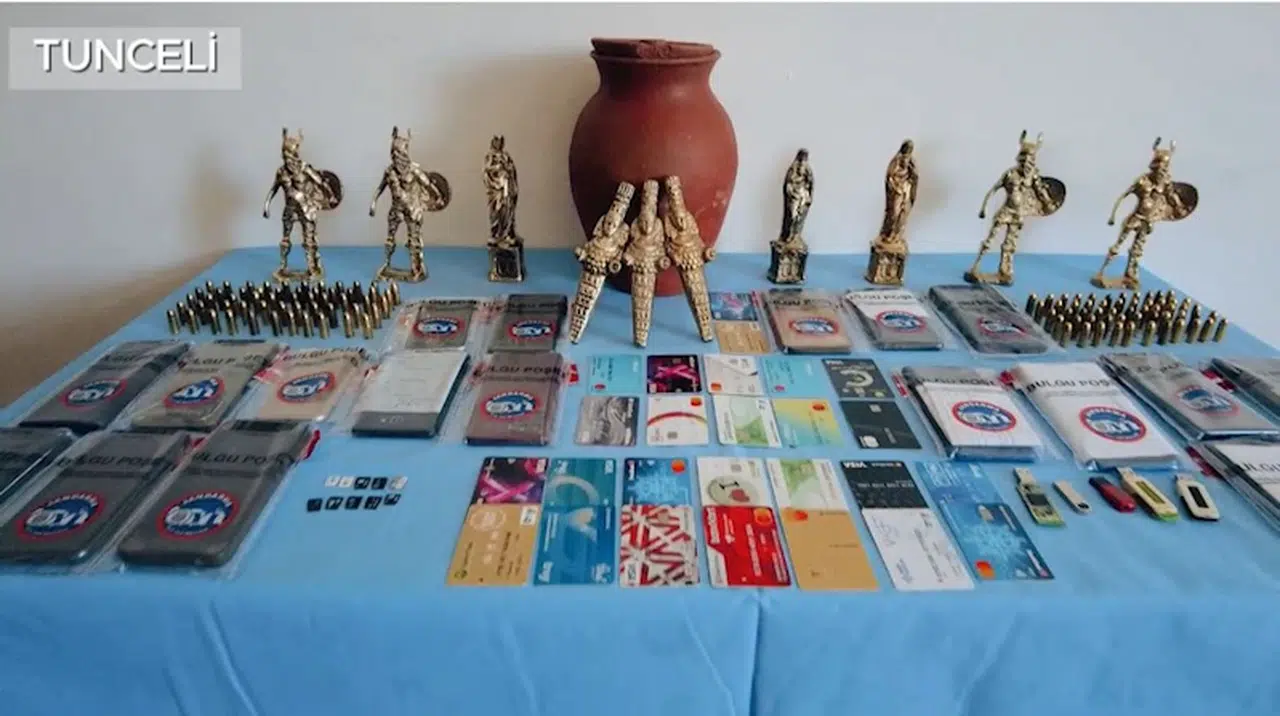 Şikayet üzerine İl Jandarma Komutanlığı Kaçakçılık ve Organize Suçlarla Mücadele Şube ekipleri, özel ekip oluşturdu. Cumhuriyet Başsavcılığının talimatıyla 3 aylık yapılan teknik ve fiziki takiple şebeke üyelerinin kimlikleri tespit edildi. Tunceli, İstanbul, İzmir, Diyarbakır, Mersin, Bingöl, Batman, Bitlis ve Gaziantep’te düzenlenen operasyonda 25 şüpheli gözaltına alındı. Şüphelilerin adreslerinde ise çok sayıda heykel, küp, sim kart, yüklü miktarda para ve silah ele geçirildi. Tunceli’ye getirilen şüpheliler, jandarmadaki işlemlerinin ardından şüpheliler adliyeye sevk edildi. (DHA)