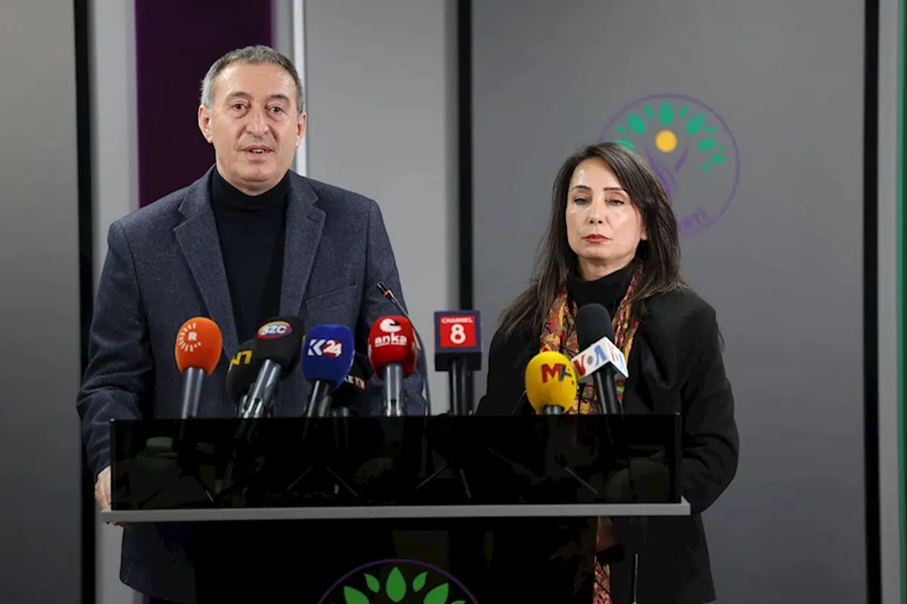 DEM Parti Eş Genel Başkanları Tülay Hatimoğulları ve Tuncer Bakırhan, parti genel merkezinde basın toplantısı düzenledi. Hatimoğulları, 'Silahlı terör örgütüne bilerek ve isteyerek yardım etme' suçundan 3 yıl 9 ay hapis cezası alan Abdullah Zeydan'ın, Van Büyükşehir Belediye Başkanlığı görevinden uzaklaştırılmasına ilişkin, "Barış sürecinin konuşulduğu ve toplumun umutlandığı bir dönemde, bu diyalog sürecini darbelemeyi mi hedefliyorsunuz? Bunları, sarayın ve Erdoğan'ın çıkıp açıklaması gerekiyor. 31 Mart'ta, Van Büyükşehir Belediye Eş Başkanımız Sayın Abdullah Zeydan'la ilgili, mazbatanın verilip verilmemesi üzerine tartışmalar yürüdü ve Van halkı tarihi bir direnişe imza attı. Bugün, yine 15 Şubat hedeflenerek, bu adımın atılmasının rövanşist bir tutum olduğunun da altını çizmek isterim. Bu bir komplodur, kumpastır. Bizler barış için şimdi değil, yıllar yılıdır bu topraklarda mücadele ediyoruz. Bizler, Kürt sorununun barışçıl ve demokratik yollarla çözülmesi için yıllardır bedel ödeyen bir siyasi partiyiz. Bizler, yıllar yılıdır 'barış' diyoruz. Onlar barışı sabote ededursunlar, iktidar ve Erdoğan, barışı sabote ededursun; biz 'barış' demekten ve barış için bedel ödemekten bir adım bile geri adım atmayacağız" ifadelerini kullandı.