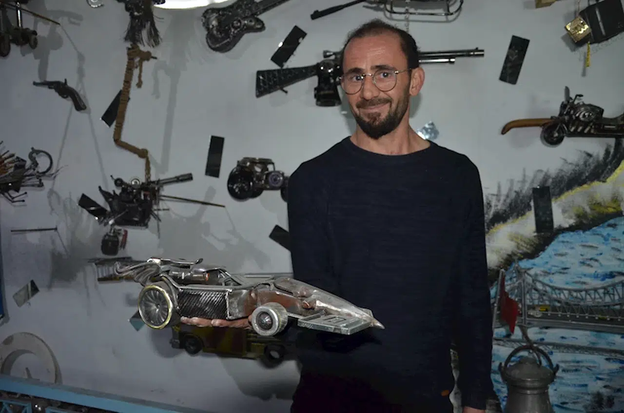 İlçe merkezinde yaşayan evli, 3 çocuk babası Mehmet Çataltaş, sanayi sitesinde yaklaşık 25 yıldır demir doğrama işiyle uğraşıyor. Çocuk yaşlarda başladığı mesleğin içinde büyüyen Çataltaş, zamanla kendini geliştirip, işletmede kullandığı hurdaya çıkan malzemeleri de değerlendirmeye başladı. Hurdalardan ilk başta heykel yapan Mehmet Çataltaş, elindeki çeşitli malzemeleri de gemi, helikopter, otomobil maketleri olarak tasarladı. Dikiş makinesi parçalarından tüfek, ütüden gemi, yangın tüpünden otomobil maketleri yapan Çataltaş, çalışmalarını işletmesinin bir bölümünde açtığı sanatevinde sergiliyor. Çalışmalar meraklıların da ilgisini çekiyor.