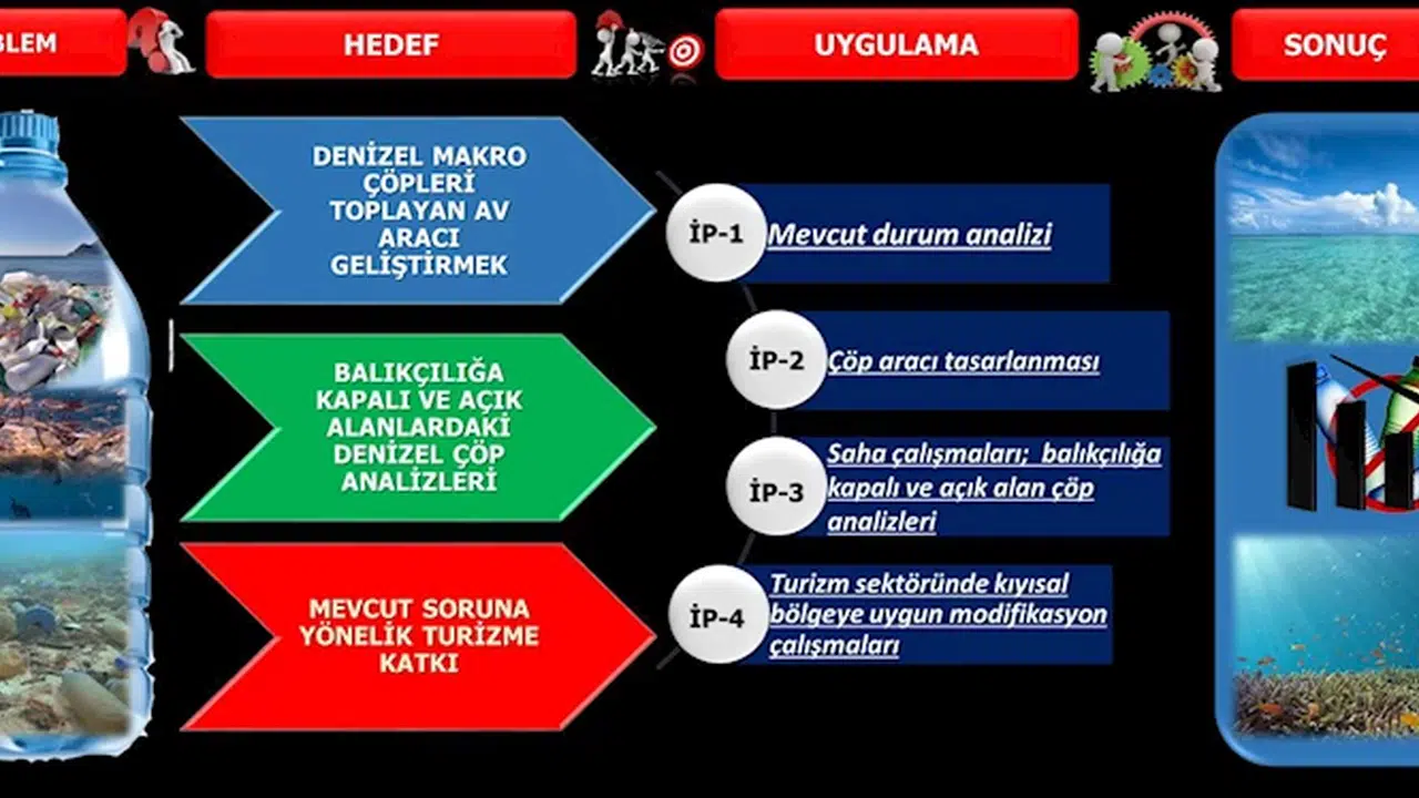 Proje hakkında bilgi veren Doç. Dr. Muharrem Hakan Kaykaç, "Deniz çöpleri, dünya çapındaki deniz habitatlarında ciddi bir sorun oluşturan ve ekosistemlere, ekonomiye ve insan sağlığına zarar veren küresel bir problem. Plastik atıkların büyük ölçekli üretimi ve denizlerdeki miktarının artışı, gelecekte daha da tehlikeli sonuçlara yol açabilir. Bu durum, denizel yaşamı, balıkçılığı, turizmi ve insan sağlığını olumsuz yönde etkiliyor. Mevcut çözümler genellikle kıyısal alanlarda ve deniz yüzeyinde yoğunlaşmıştır, ancak deniz zeminindeki çöplerin önemli bir kısmı hala deniz tabanında varlığını sürdürüyor. Günümüzde dünya denizlerinde bulunan plastik miktarı 10 milyon ton civarında olup bu miktarın 2030 yılına kadar 53 milyon tona ulaşması bekleniyor. Bu artış, plastik kirliliğinin daha da tehlikeli boyutlara ulaşmasına neden olacak. Bu projede, deniz tabanı çöplerini temizlemek için sürütme av araçları üzerinde yapılacak modifikasyonlar ve yenilikçi tasarımlar üzerinde çalışılacak. Proje kapsamında, balıkçılarla iş birliği yapılarak deniz çöpleri hakkında anketler düzenlenecek ve onların görüşleri alınacak. Balıkçılık için kullanılan sürükleme av araçlarında yapılacak olan modifikasyonlar ve mühendislik çalışmaları ile deniz dibindeki çöpler hedeflenecek. Modifiye edilecek av aracının ön denemeleri sualtı gözlemleri ile farklı çekim hızlarında test edilecek, çekim öncesi ile sonrası zemin örneklemeleri yapılacak" dedi.