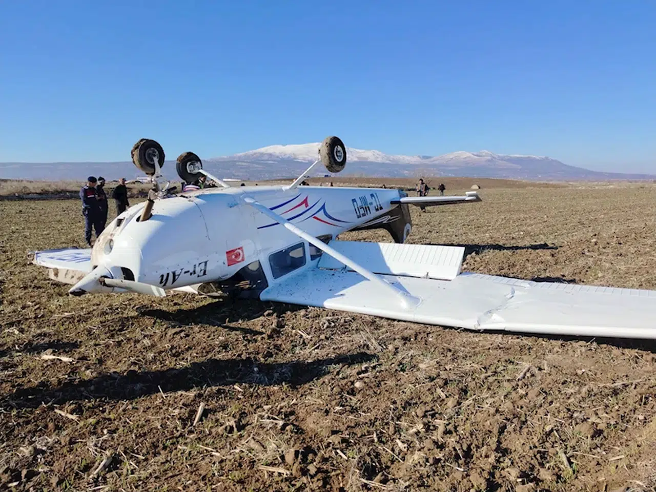 Ramazan ÇETİN/DENİZLİ, (DHA)- DENİZLİ’nin Çal ilçesinde eğitim uçağı, motor arızası nedeniyle araziye zorunlu sert iniş yaptı. Ters dönen uçaktaki 2 kişiden 1’i hafif yaralandı.
