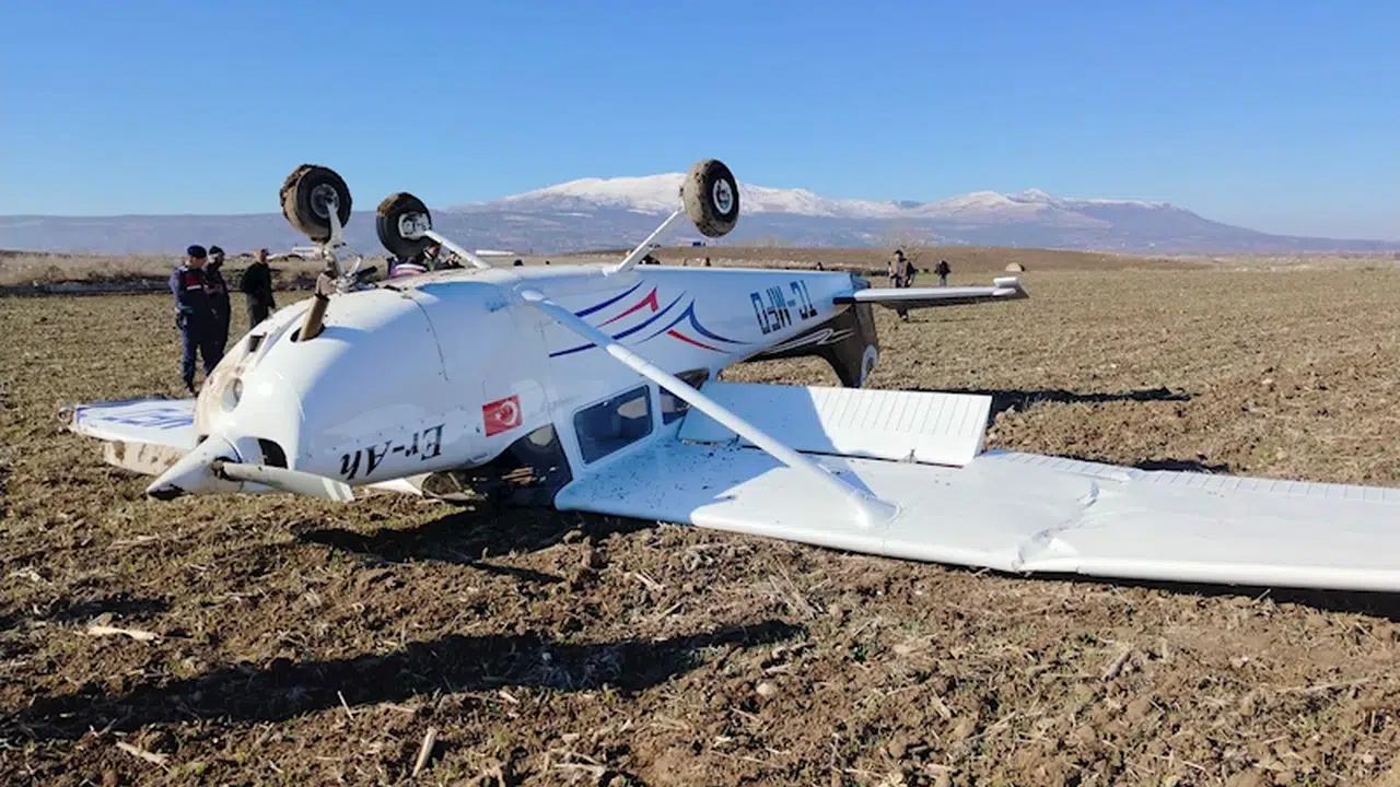 Uşak’tan kalkış yapan içinde 2 kişinin bulunduğu eğitim uçağı, Denizli’de Çardak Havalimanı’na iniş yaptı. Bir süre sonra tekrar havalanan uçak Çal ilçesi semalarına geldiğinde motor arızası yaşandı. Bunun üzerine pilot, İsabeyli Mahallesi Ali Çeşmesi mevkisine zorunlu iniş yaptı. İhbar üzerine bölgeye sağlık, itfaiye, jandarma ve AFAD ekipleri sevk edildi. Ters dönen uçaktaki 2 kişiden 1’inin hafif yaralandığı belirtildi. (DHA)