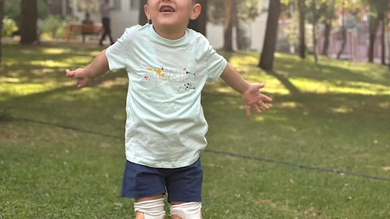 Depremde bacaklarını kaybeden Eymen, protezle hayata bağlandı