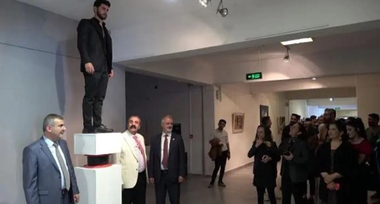 Güncel sanatla ilgilendiklerini ve özellikle öğrencilerin içinde bulunduğu sıkıntılar ve psikolojik durumlar, hayata dair konulardan yola çıkarak mezuniyet projesi hazırlamaya çalıştıklarını ifade eden Doç.Dr. Cemile Didem Özışık, "Halit Kaplan, Adana'da depremi yaşadı. Biz kendisiyle sürekli kontak halindeydik. Erzurum'a geldiğinde Halit, sismik izolatörle çalışma yapmak istediğini söyledi. Heykel kaidelerinin arasına sismik izolatör üstüne, resim koymayı planladığını belirtti. Proje üzerinde tartışırken kaidenin üzerinde Halit Kaplan'ın durmasının daha güçlü olacağına karar verdik. Güzel ve güncel bir iş oldu. Çalışması dikkat çekti. İlk defa bir performans çalışmasıyla bir öğrenci mezun oluyor. Bu çalışmadaki amacımız koruma-korunmayı anlatmak. Sismik izolatör binayı her türlü yıkıma karşı koruyor. O yüzden kolonların arasına yerleştiriliyor. Biz de bir heykel kaidesinin arasına izolatör yerleştirerek bir insan olarak sanatçıyı konumlandırdık. Korumaya aldığımız insanı anlatmaya çalıştık" diye konuştu. Halit Kaplan'ın mezuniyet performansını izleyen öğrenciler, çalışma hakkında sorular sordu.