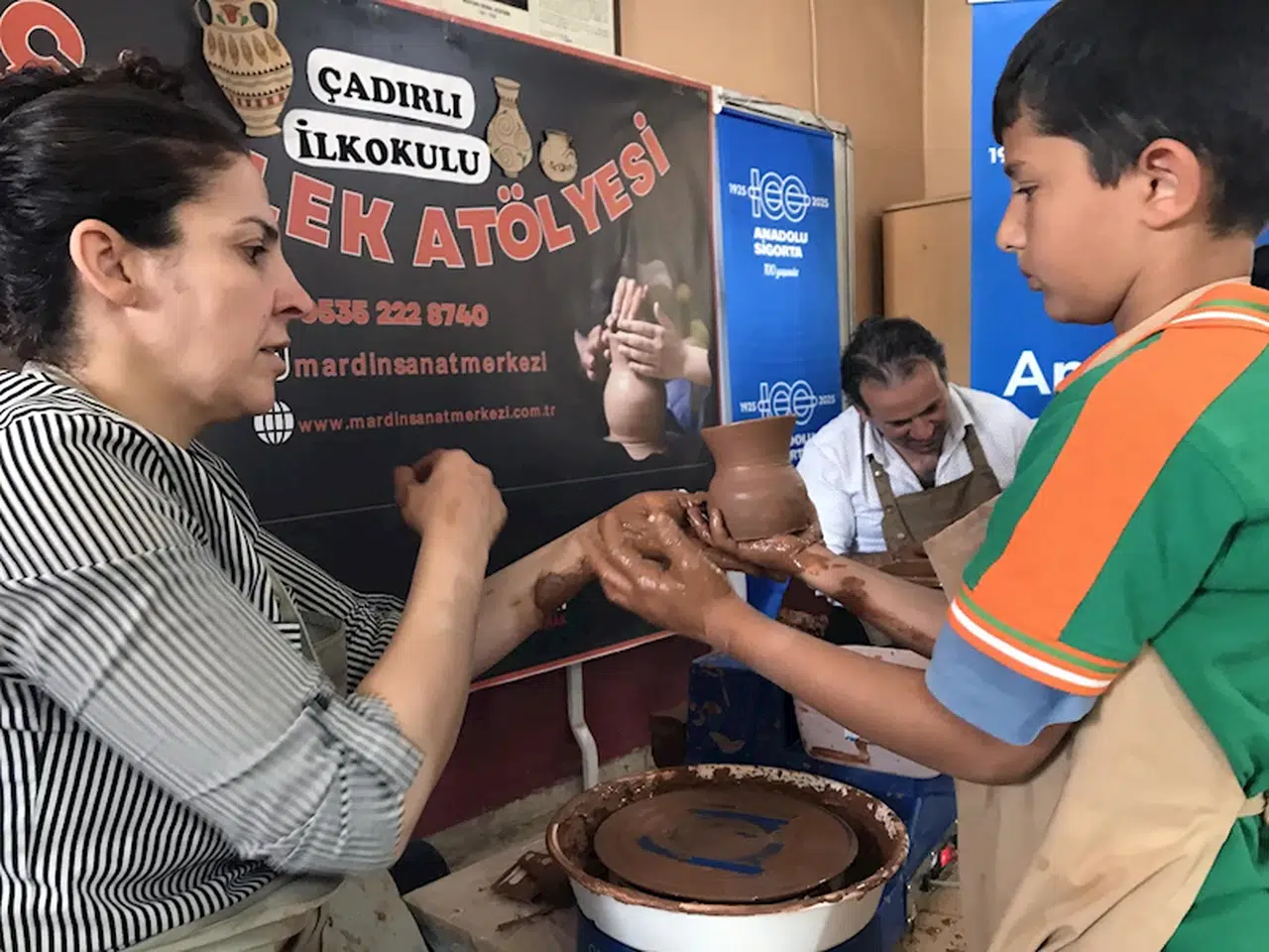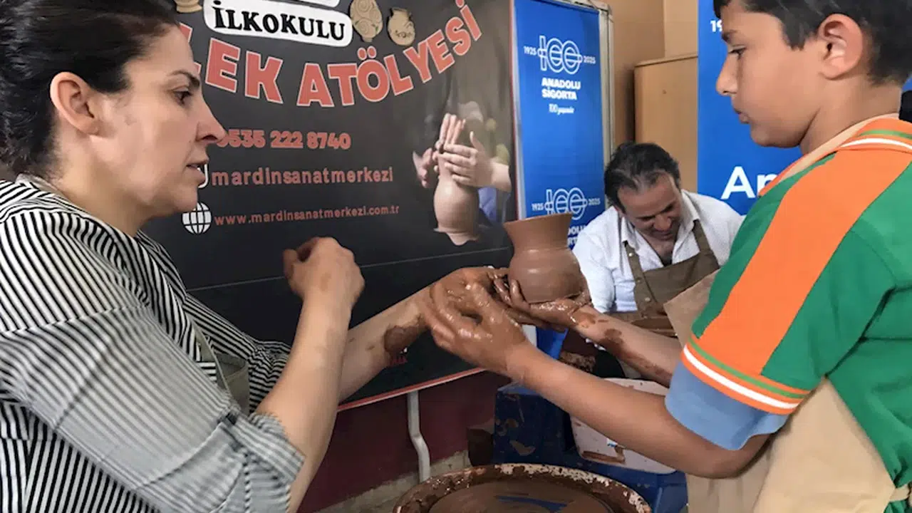 Emrullah KARAKAŞ/DERİK (Mardin), (DHA)- MARDİN’in Derik ilçesindeki kırsal Çadırlı İlk ve Ortaokulu’nda 100 öğrenci, Milli Eğitim Bakanlığı (MEB) tarafından yürütülen ‘Maarif Eğitim Programı’ kapsamında gerçekleştirilen etkinlikle ilk kez çömlekçilik ile tanıştı.