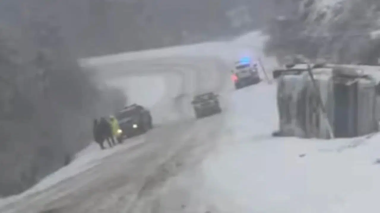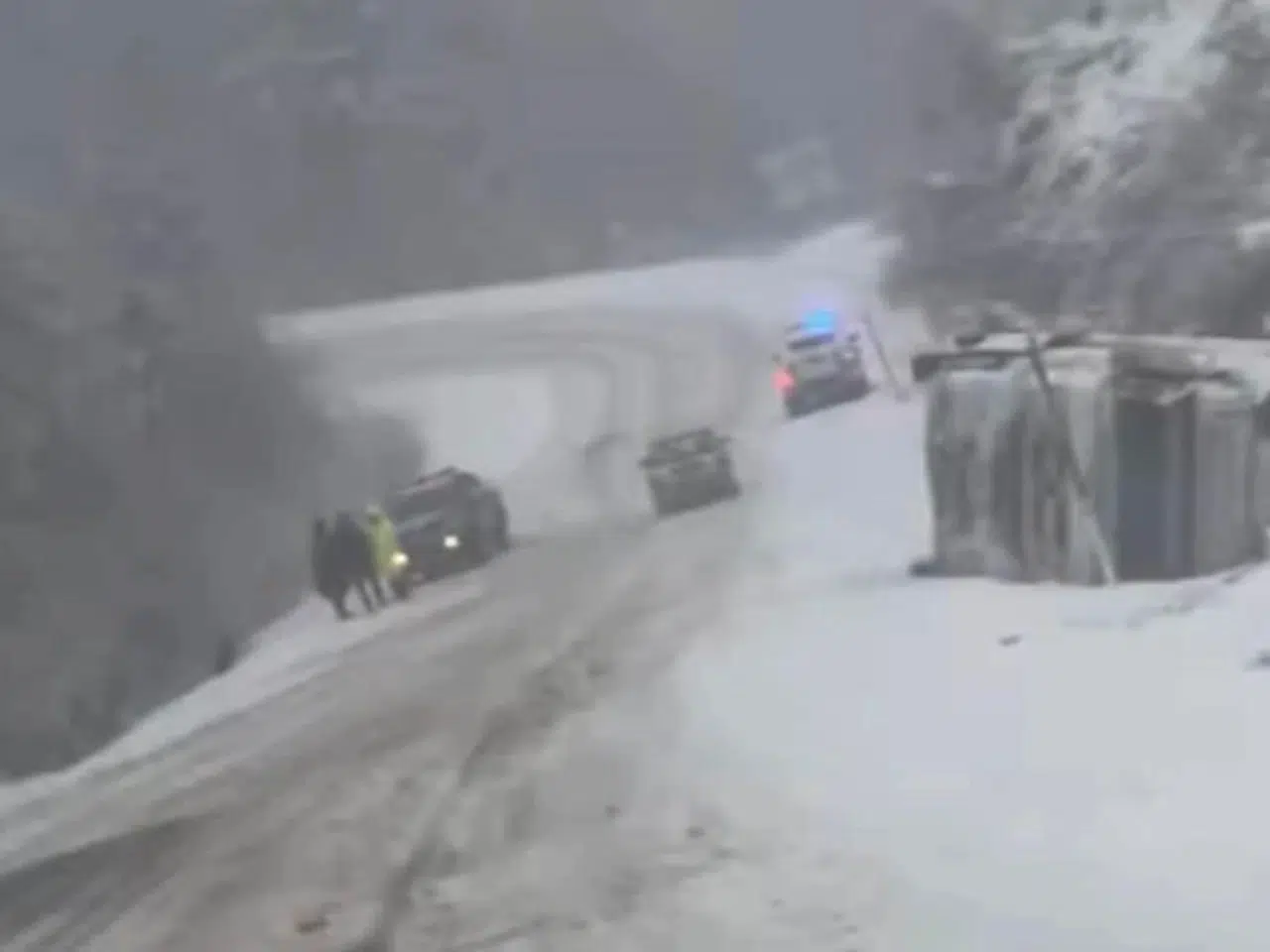 Mustafa YİĞİT/DOMANİÇ(Kütahya),(DHA)- KÜTAHYA’nın Domaniç ilçesinde kar yağının ardından kayganlaşan yolda sürücüsünün kontrolünü kaybettiği TIR devrildi, 2 kişi yaralandı.