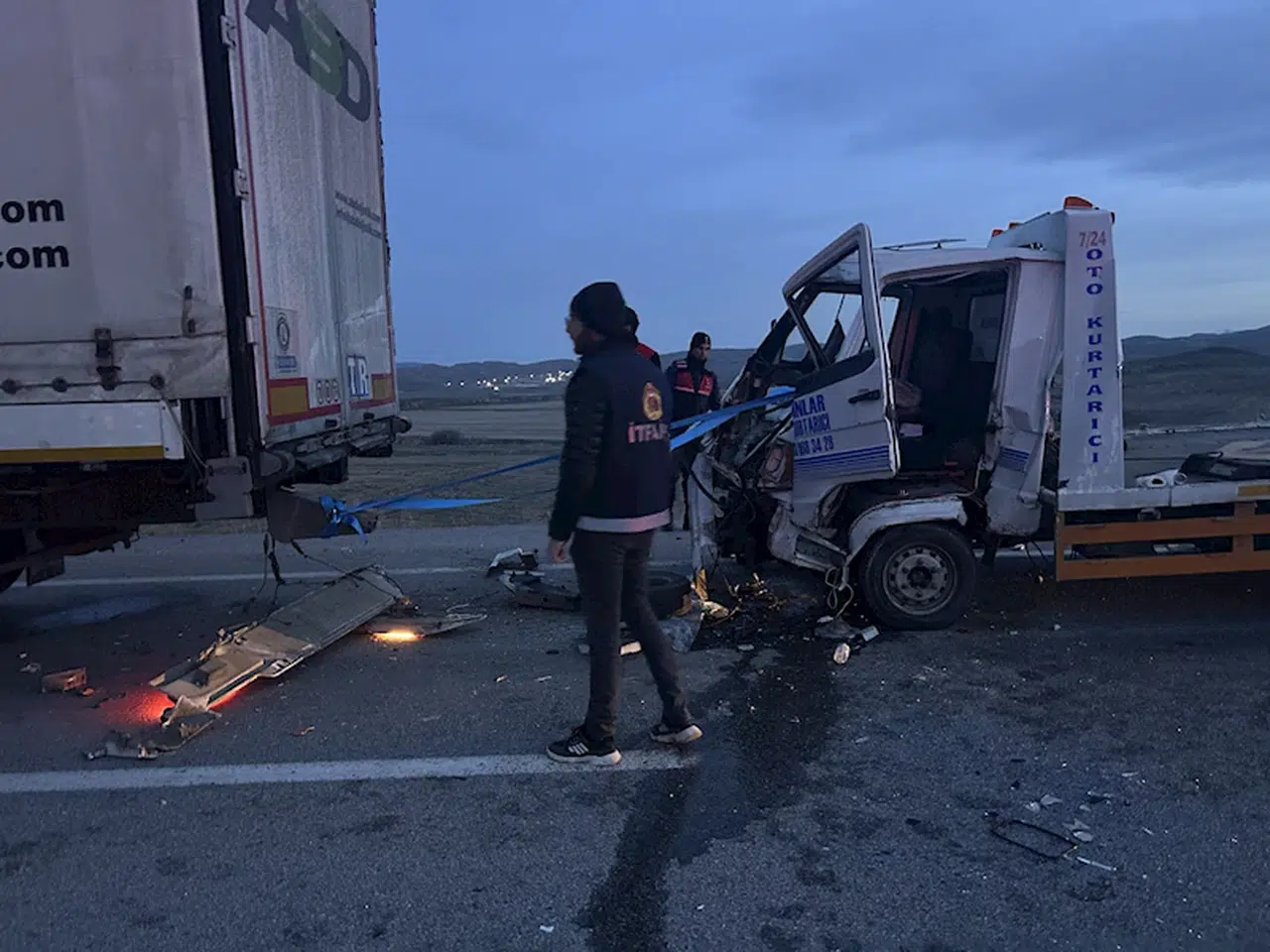 Devrilen traktörün sürücüsüne yardım için duran TIR'a çekici çarptı: 1'i ağır, 3 yaralı