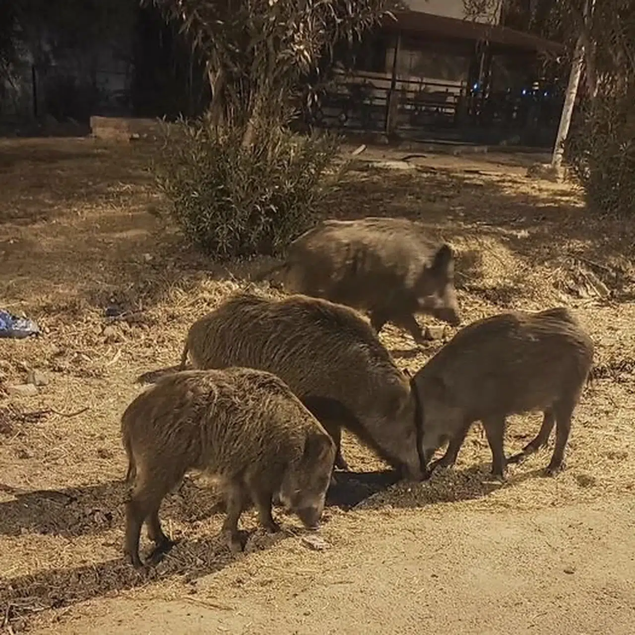 Bahattin ALBAYRAK/ DİDİM (Aydın), (DHA)- AYDIN'ın Didim ilçesinde ormanda yiyecek bulamayan ve aç kalan yaban domuzları, şehre indi. O anlar, cep telefonu kamerasıyla kaydedildi.