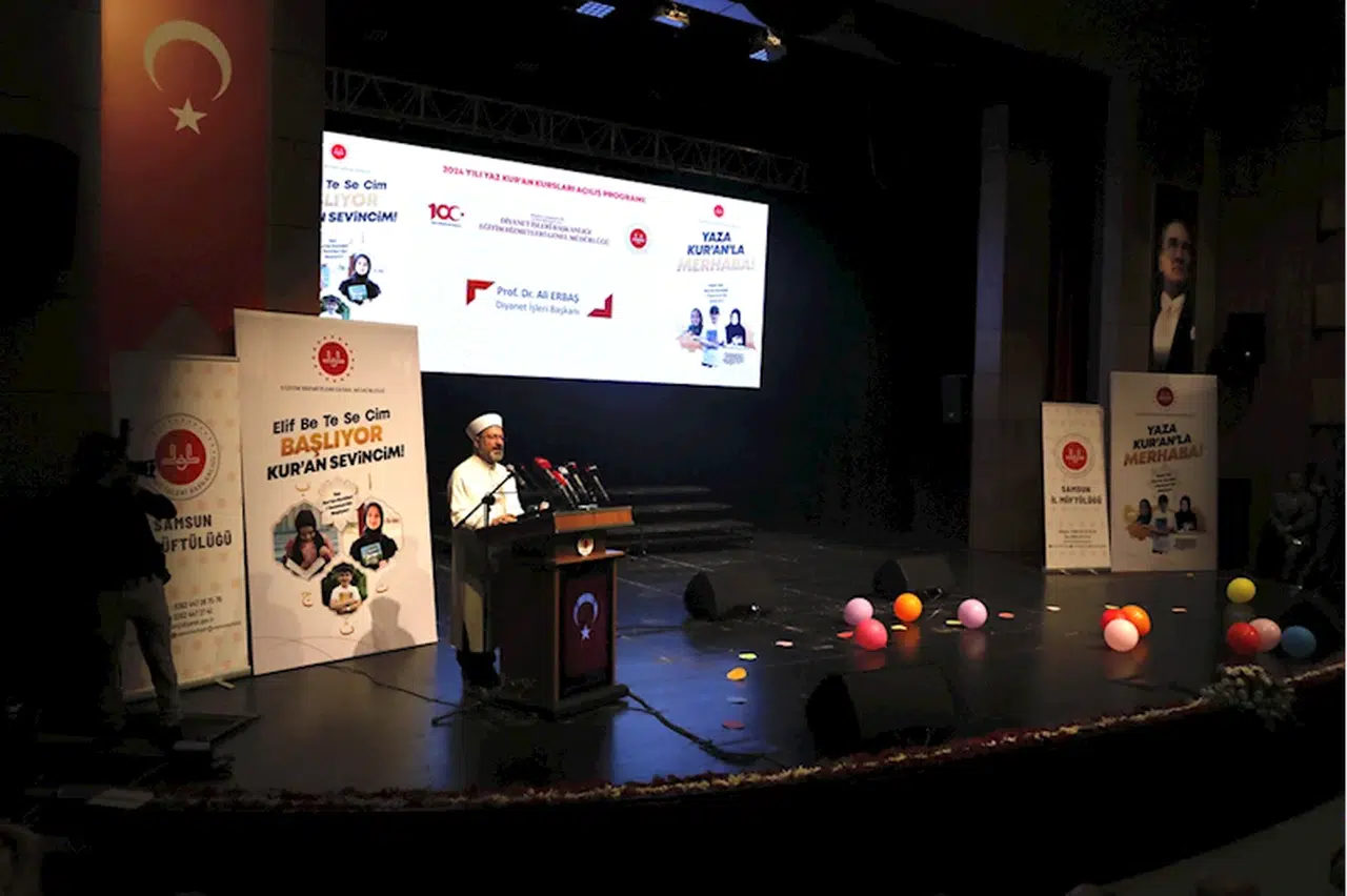 Erbaş, Diyanet İşleri Başkanlığı tarafından Atakum Sanat Merkezi'nde yaz Kur'an kurslarının açılışı dolayısıyla düzenlenen törendeki konuşmasında, 81 ilde, 922 ilçede, 90 bin cami ve 30 bin civarındaki Kur'an kursunda yaz kurslarının başlayacağını söyledi.