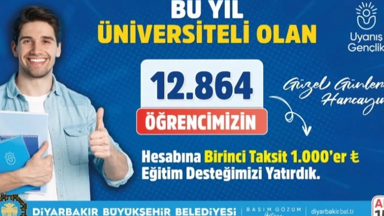 Diyarbakır Büyükşehir Belediyesi, merkez ve ilçelerde bu yıl üniversiteye başlayan 12 bin 864 Diyarbakırlı gencin hesabına eğitim desteği ödemesinin ilk taksitini yatırdı.
