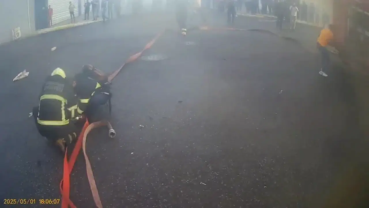 Diyarbakır’ın Kayapınar ilçesindeki Birtane Oto Sanayi Sitesi’nde faaliyet gösteren balata spreyi üretimi yapılan iş yerinde meydana gelen patlama sonrası çıkan yangında, bir itfaiye erinin alevlere müdahale ettiği anlara ait kask kamerası görüntüleri ortaya çıktı. Görüntülerde, itfaiye ekiplerinin iş yerinin kepenklerinin önünde hazırlık yaptığı, daha sonra iş yeri kepenklerinin altından başlayarak yangına müdahale ettiği anlar yer aldı. (DHA)