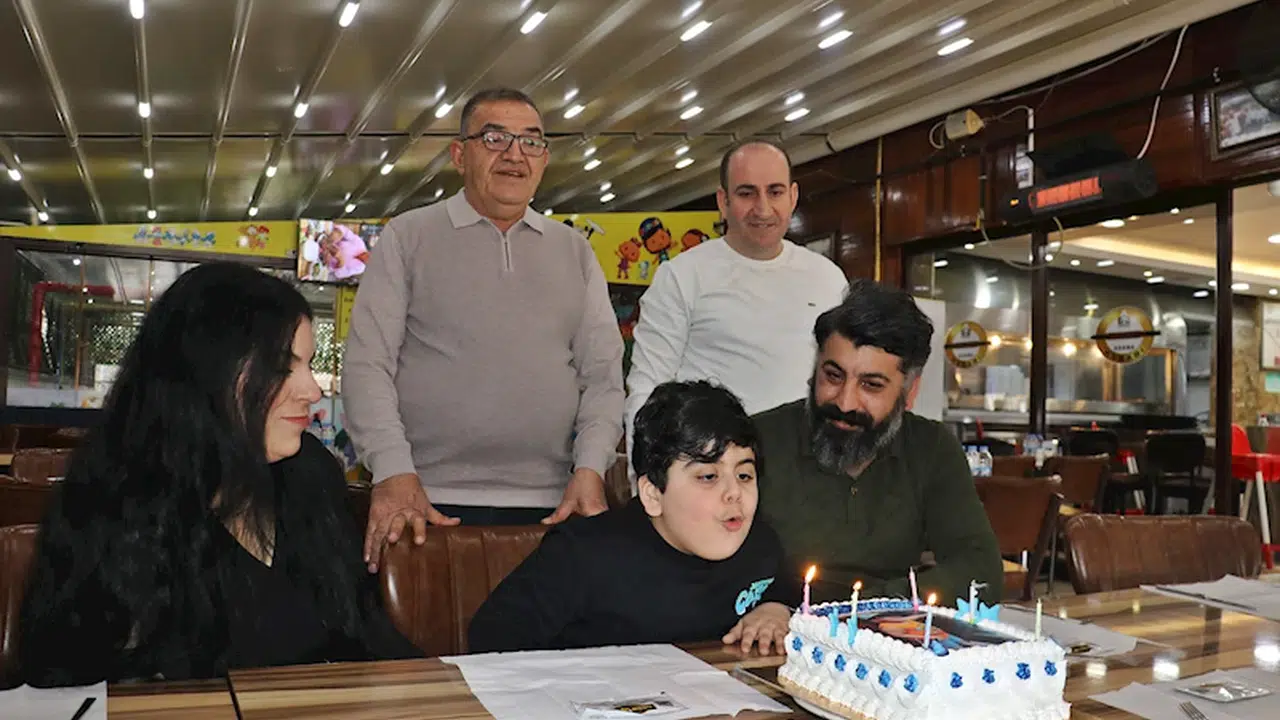 Hülya ve Polat İlgen’in tek çocuğu DMD hastası Muhammed Emir için bir restoranda sürpriz doğum günü kutlaması yapıldı. Tedavisi için gerekli olan 3 milyon doların toplanması için valilik onaylı kampanyası süren Muhammed Emir, dilek tutup resminin basıldığı pastanın üstündeki mumları üfledi.