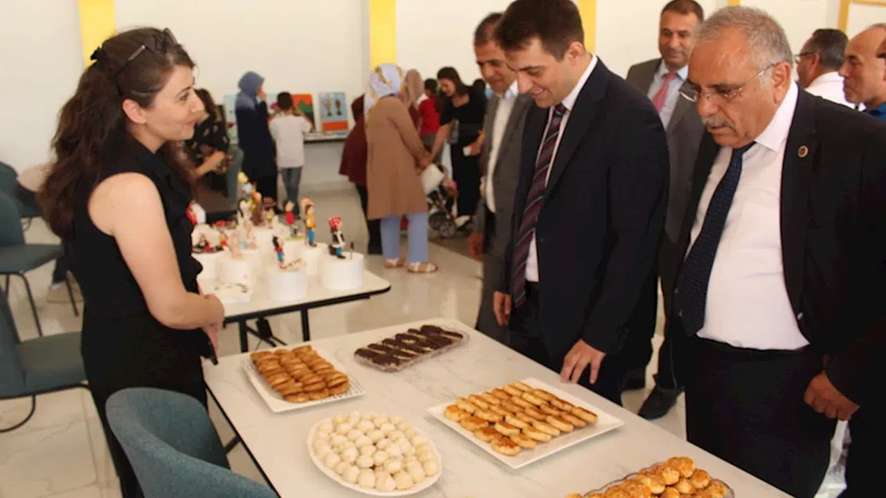Belediye Kongre Merkezi'nde düzenlenen sergiye Kaymakam Hakan Vatansever, Belediye Başkanı İsmail Çetinkaya, İlçe Milli Eğitim Müdürü İsmail Özüdoğru, daire amirleri, kurum müdürleri, vatandaşlar, öğrenciler ve kursiyerler katıldı.