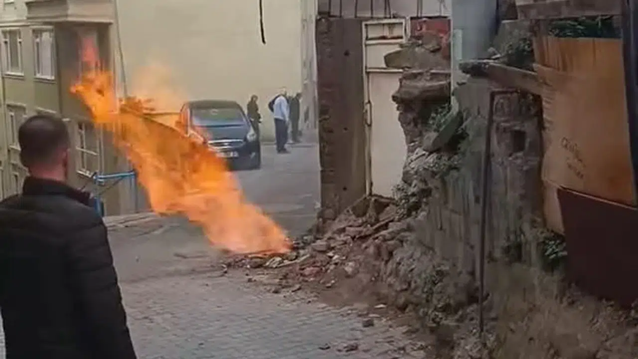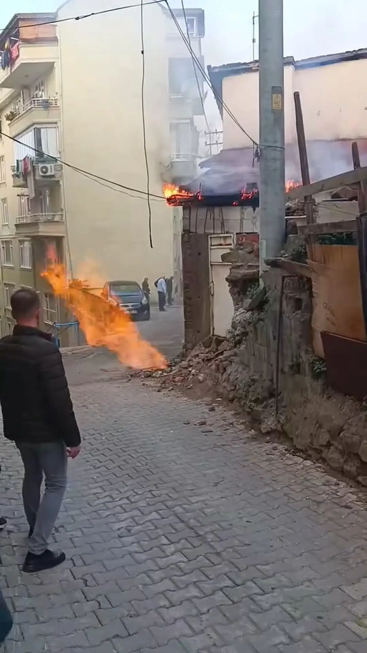 Doğal gaz borusu alev aldı, yandaki evin çatısını yaktı
