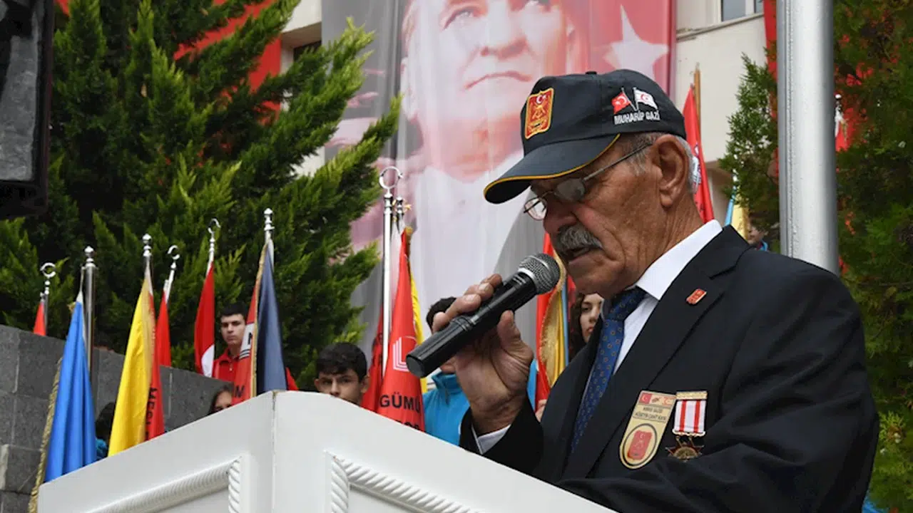 Günün anlam ve önemini belirten konuşmayı yapan gazi Hüseyin Cahit Kaya, nice zaferler gören, bağımsızlığı ve istiklali için vatanını topyekun koruyan, Trablusgarp'ta, Çanakkale'de, Sarıkamış'ta ve Galiçya'da kanıyla vatan toprağını süsleyen ecdadın torunları olduklarını dile getirdi.