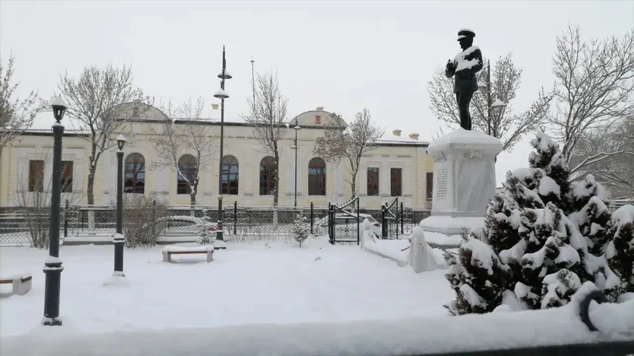 Kars'ta kar yağışıyla kent merkezi beyaza büründü.