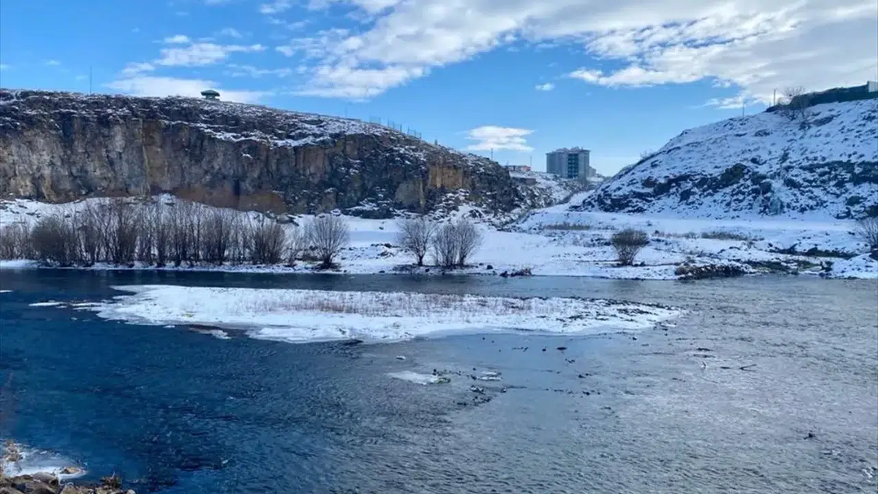Hava sıcaklığının sıfırın altına düştüğü şehirde, Kura Nehri'nin bazı noktaları buz tuttu.