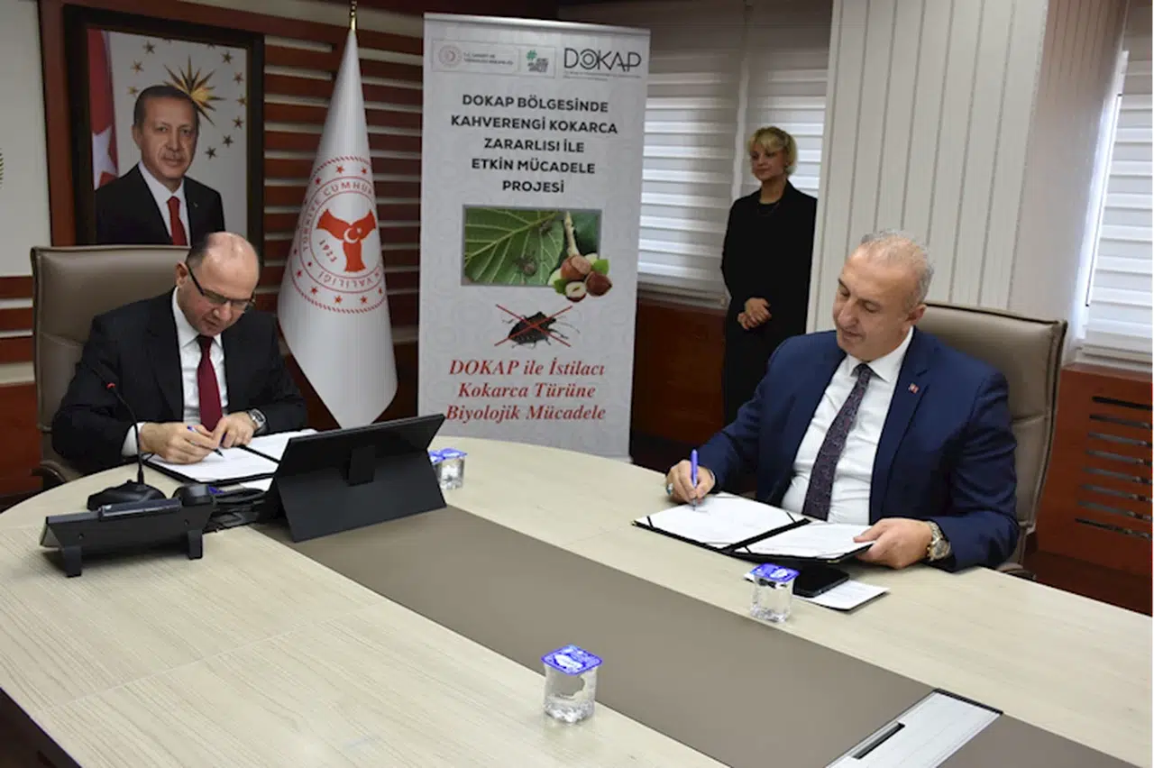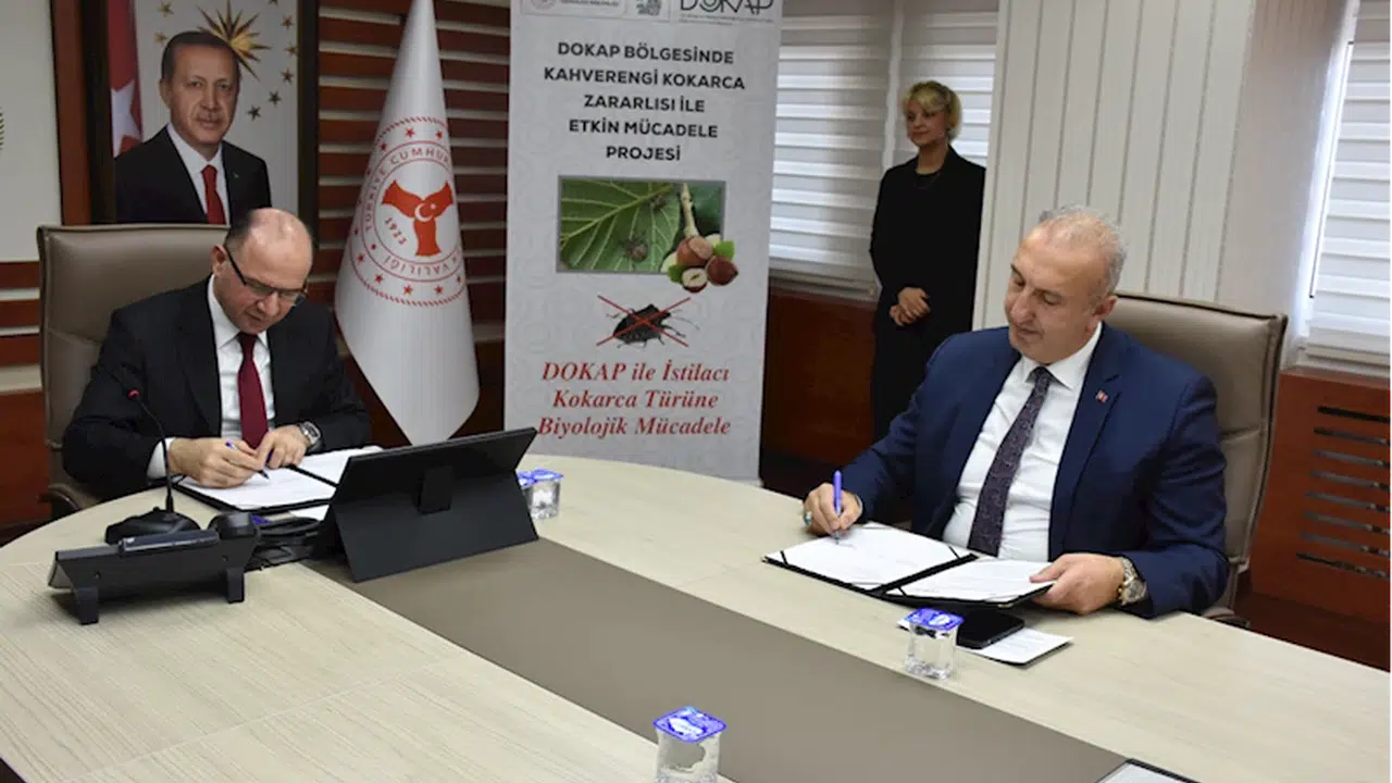 GİRESUN (AA) - Giresun Tarım ve Orman Müdürlüğü ile Doğu Karadeniz Projesi Bölge Kalkınma İdaresi (DOKAP) Başkanlığı arasında "Kahverengi Kokarca ile Etkin Mücadele" projesi protokolü imzalandı.
