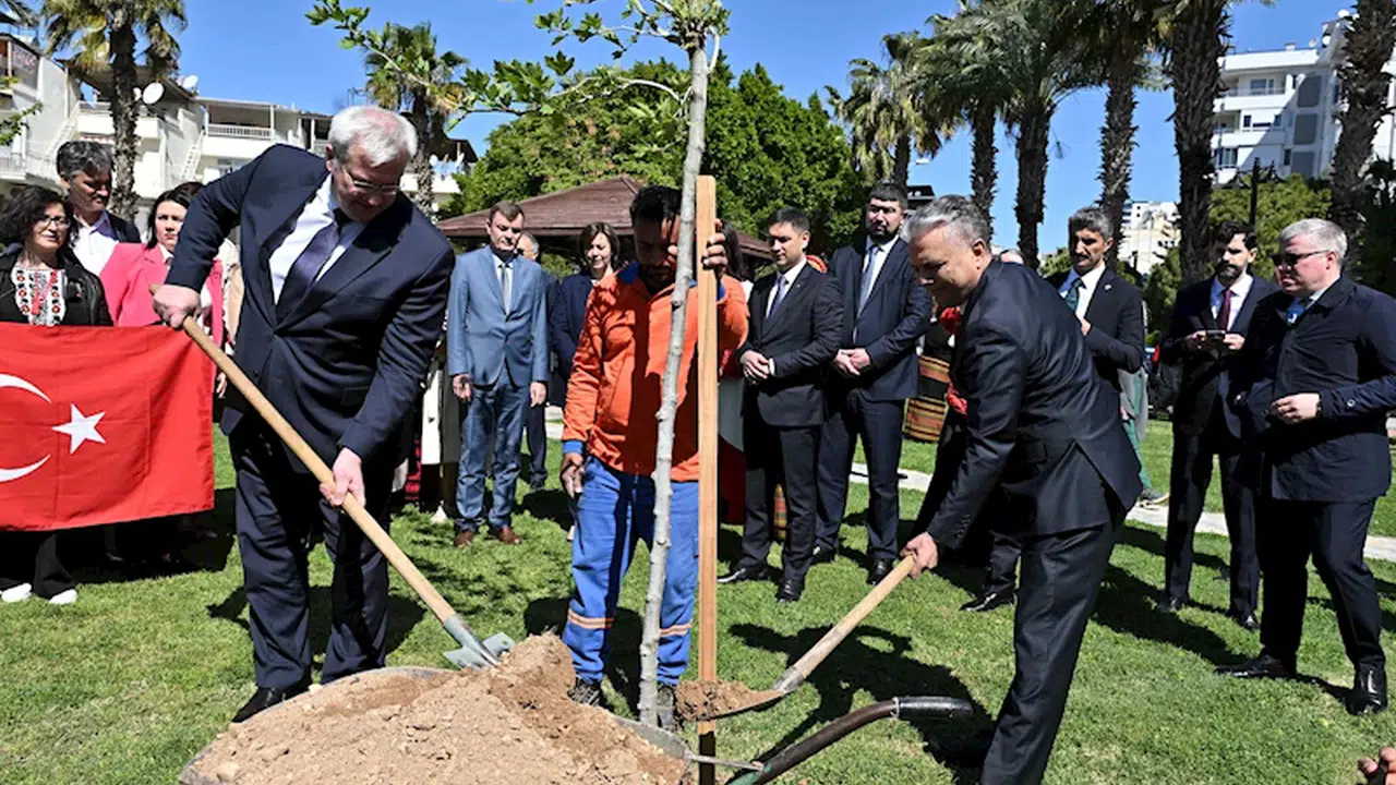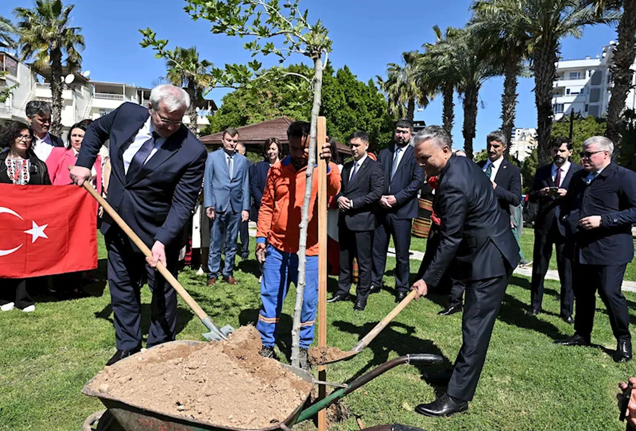 ANTALYA, (DHA)- ANTALYA’da Muratpaşa Belediye Başkanı Ümit Uysal ve Ukrayna Dışişleri Bakanı Andriy Sibiha, Ukrayna ve Türkiye arasındaki dostluğun simgesi olarak Ukrayna Kültür Parkı’nda birlikte çınar ağacı dikti.