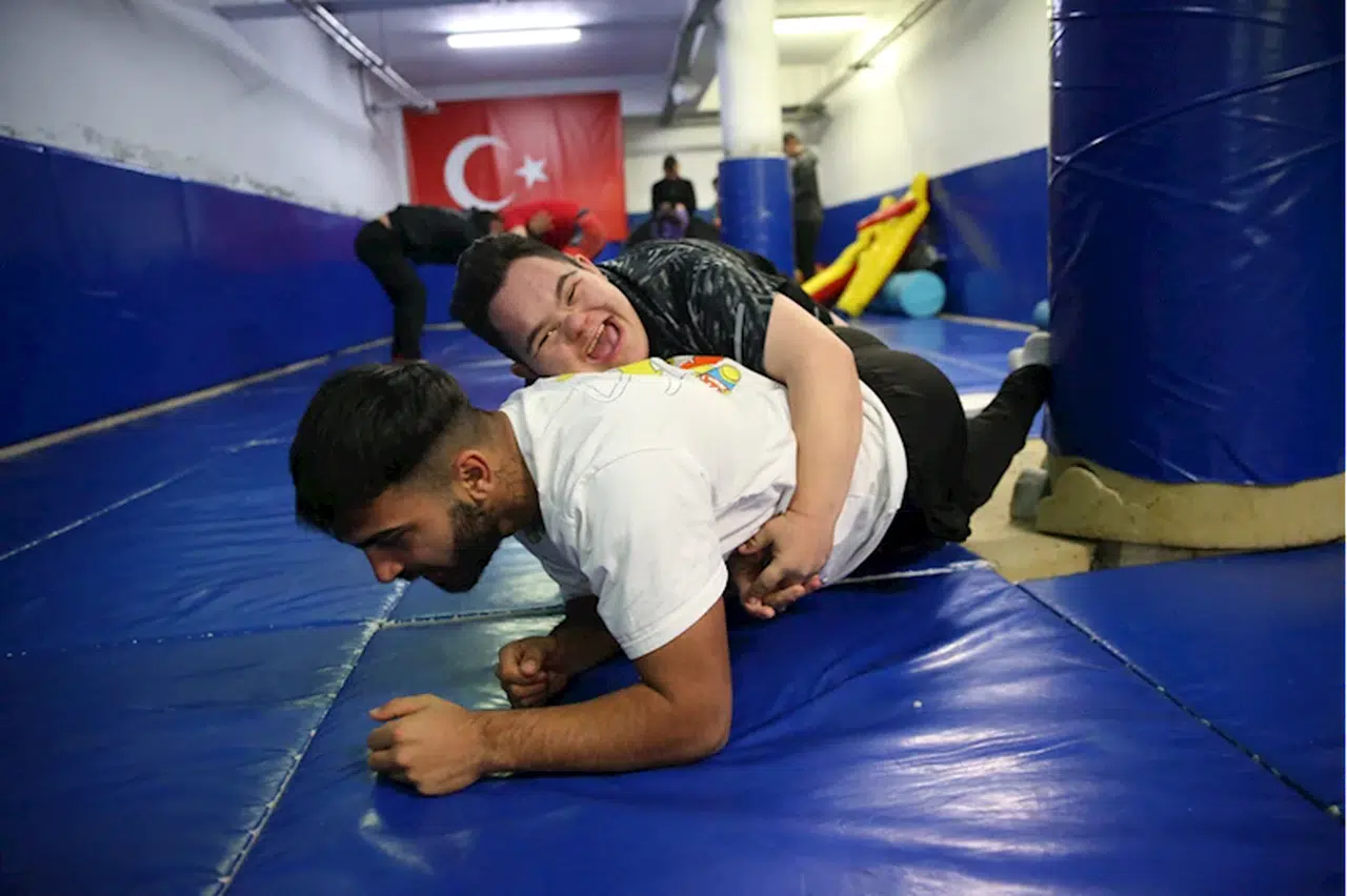 Bunu duyan güreş antrenörü Hakkı Karabakal, down sendromlu Hüseyin Yılmaz'ı antrenmana davet etti.