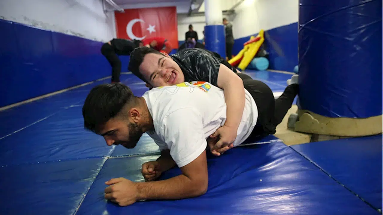 Down sendromlu Hüseyin'in yüzü güreşle güldü
