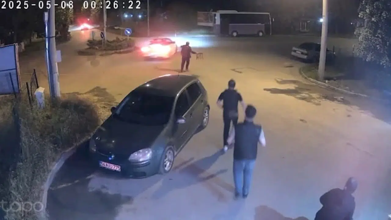 Sapanca ilçesi Kırkpınar Mahallesi Bağdat Caddesi’nde gece saatlerinde iki sürücü, otomobiliyle kavşakta drift attı. Bu sırada durumdan rahatsız olan bir esnaf, iş yerindeki tabureyi kapıp, otomobile doğru koştu. Esnafı gören sürücü, hızla olay yerinden uzaklaştı. Bu sırada esnaf elindeki tabureyi otomobile doğru fırlattı. Tabura araca isabet etmezken, o anlar bir iş yerinin güvenlik kamerasına yansıdı. (DHA)