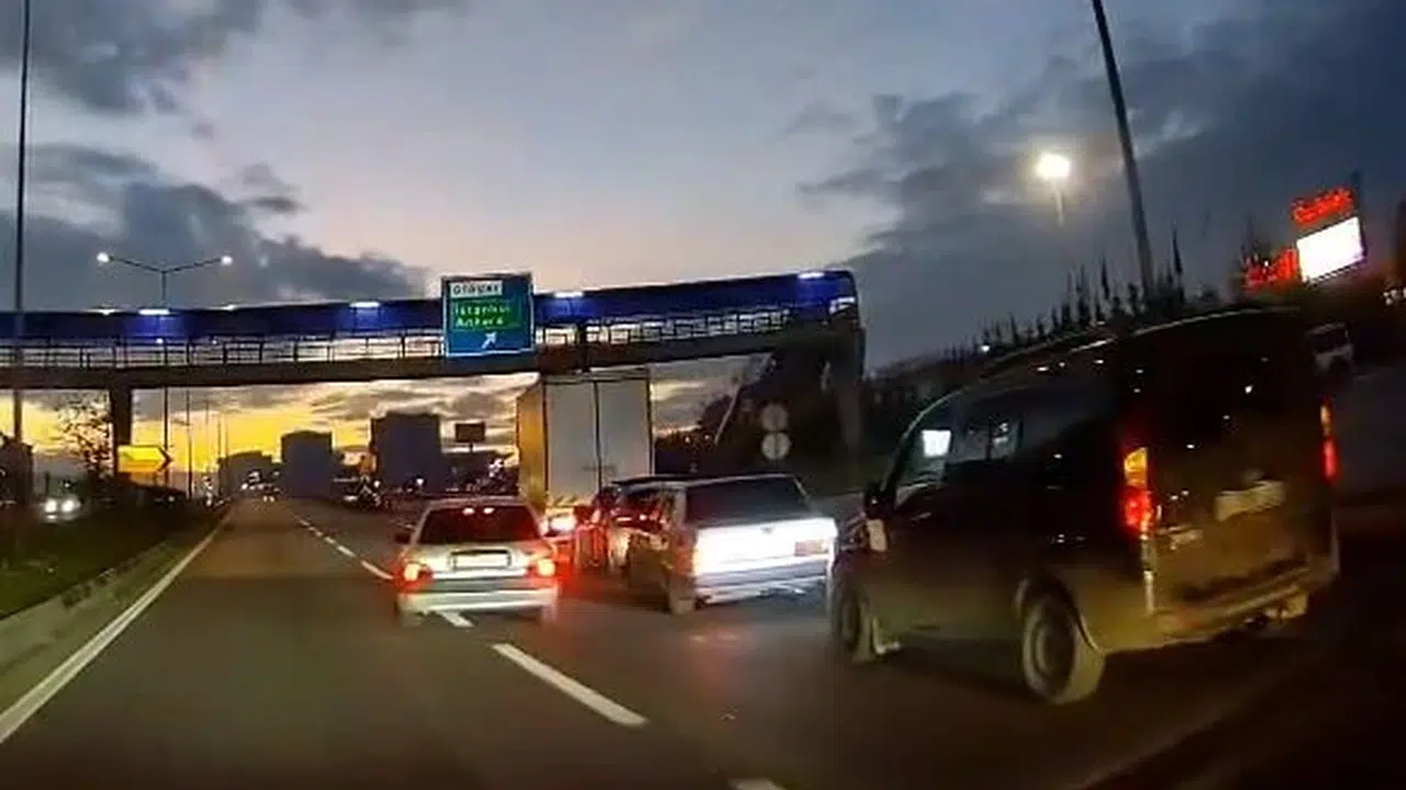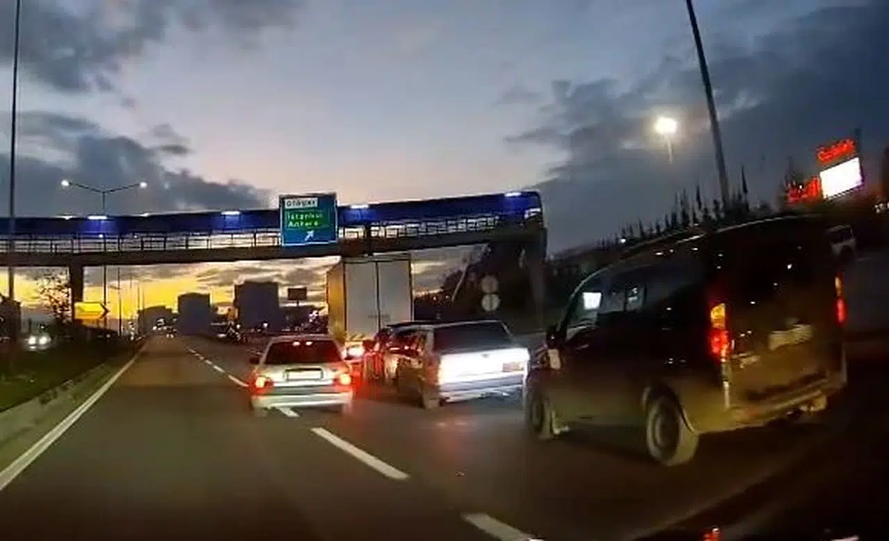 Olay, 17 Kasım’da saat 18.00 sıralarında, D-100 kara yolunun Paşaköy mevkiinde meydana geldi. İstanbul yönüne giden düğün konvoyundaki hafif ticari araç ve otomobilin sürücüleri, gelin arabasının arkasında yer almak için birbirini sıkıştırdı. Sonrasında konvoydaki başka bir otomobil sürücüsü de bu iki aracı sıkıştırdı. Dakikalarca süren olayda, 3 araç trafiği tehlikeye attı. Yaşananlar, arkadan gelen ve kaza tehlikesi atlatan bir otomobilin araç kamerasına yansıdı. (DHA)