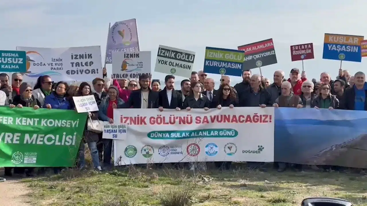 Bursa’nın İznik ve Orhangazi ilçelerinin sınırları içinde yer alan ve son yıllarda su seviyesindeki hızlı düşüşle gündeme gelen İznik Gölü, ‘2 Şubat Dünya Sulak Alanlar Günü’nde’, Doğayı ve Çevreyi Koruma Derneği (DOĞADER) öncülüğünde düzenlenen basın açıklamasıyla bir kez daha gündeme taşındı. Göl kıyısındaki Çakırca Mahallesi’nde yapılan açıklamaya Bursa Kent Konseyi, Osmangazi Kent Konseyi, Nilüfer Kent Konseyi, Gemlik Kent Konseyi, Mudanya Kent Konseyi ve İznik Çevre ve Yaşam Platformu üyeleri katıldı.