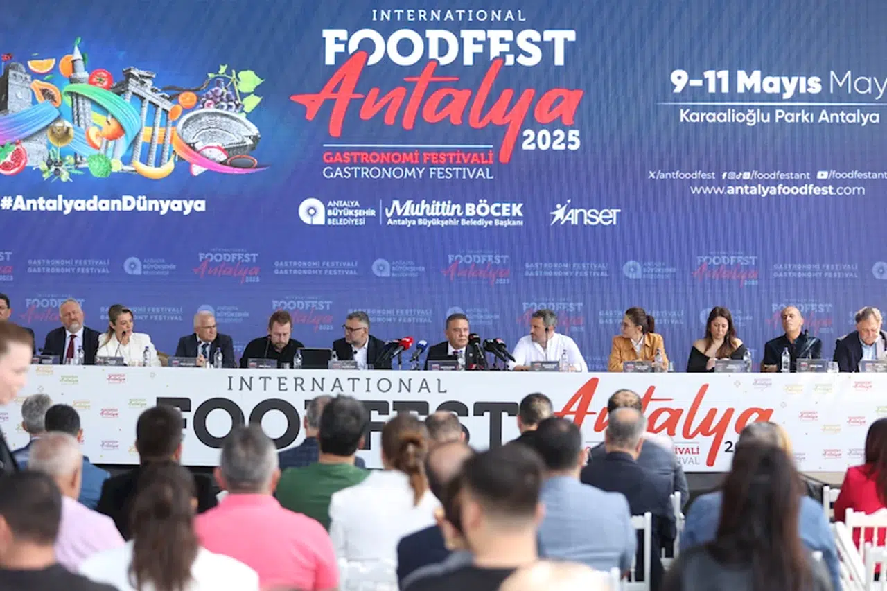 Antalya'da 9-11 Mayıs tarihleri arasında düzenlenecek 4. Uluslararası Food Fest Antalya Gastronomi Festivali kapsamında basın toplantısı gerçekleştirildi. Festivalin basın toplantısına Antalya Büyükşehir Belediye Başkanı Muhittin Böcek öncülüğünde, Türk Mutfağı Araştırmacısı Ömür Akkor, Şef Mehmet Özer, Michelin yıldızlı şef Muzaffer Ozan Kumbasar, Gastronomi Eğitmeni ve Şef Çiğdem Seferoğlu, Beslenme Uzmanı Dilara Koçak, Şef Mehmet Akdağ, AGYİD Yönetim Kurulu Başkanı Mehmet Zeki Özen, ATSO Meclis Başkanı Ahmet Öztürk, AESOB Başkanı Adlıhan Dere, AKTOB Yönetim Kurulu Başkanı Kaan Kaşif Kavaloğlu, Food Fest İçerik Direktörü Gökmen Sözen, ABB Genel Sekreteri Cansel Tuncer ve Kumluca Belediye Başkanı Mesut Avcıoğlu katıldı.