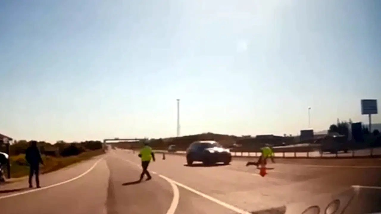 Tekirdağ’ın Malkara ilçesinde 'dur' ihtarında bulunan polis memuru Recep B.'ye, ciple çarpıp kaçan, takip sırasında kaza yapan Enes A. yaralı olarak saklandığı menfezde yakalandı. Kontrol noktasında sürücüsünün ihtara uymadığı cipin, polis memuruna çarptığı anlar noktadaki kameraya yansıdı. Görüntülerde, elini kaldırıp 'dur' ihtarında bulunan polisin, ihtara uymayıp hızla gelen cipten kaçmaya çalıştığı ve bu sırada aracın çarpıp kaçtığı anlar yer aldı. (DHA)