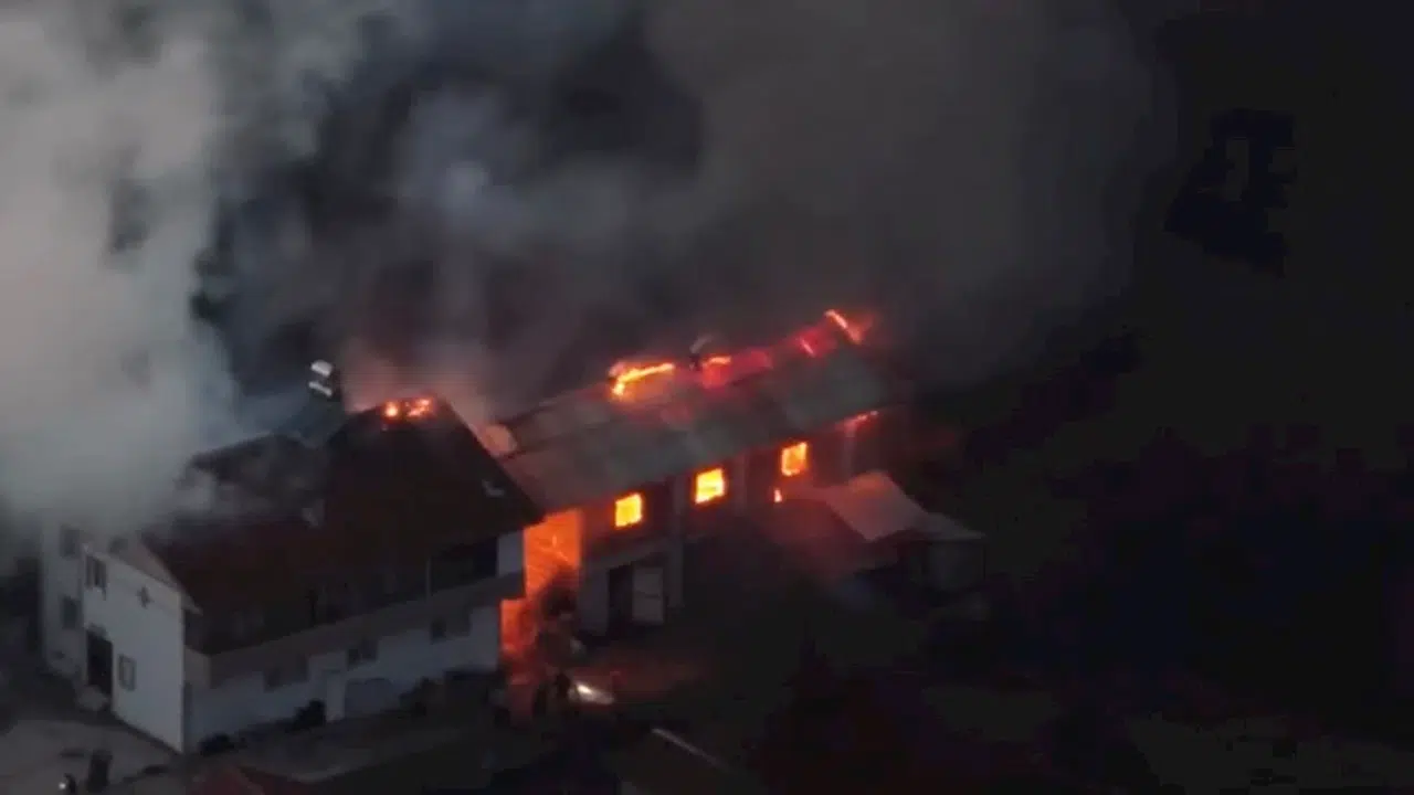 Yığılca ilçesi Tıraşlar köyü Dağ Mahallesi'nde Sezgin Doğancı'ya ait ahır ve samanlıkta, dün saat 20.00 sıralarında henüz belirlenemeyen nedenle yangın çıktı. Yangın, kısa sürede yanındaki 2 katlı betonarme eve de sıçradı. İhbarla bölgeye sağlık, jandarma ve itfaiye ekipleri sevk edildi. Yangın, itfaiyenin 1 saatlik çalışmasıyla söndürüldü. Yangın anları, dronla havadan görüntülendi. Can kaybının olmadığı yangında ev, ahır ve samanlıkta hasar oluştu.