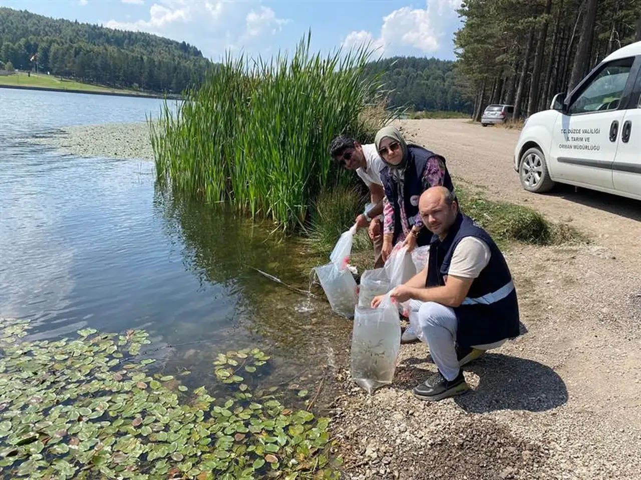 Düzce'de göl ve göletlere 35 bin sazan yavrusu bırakıldı