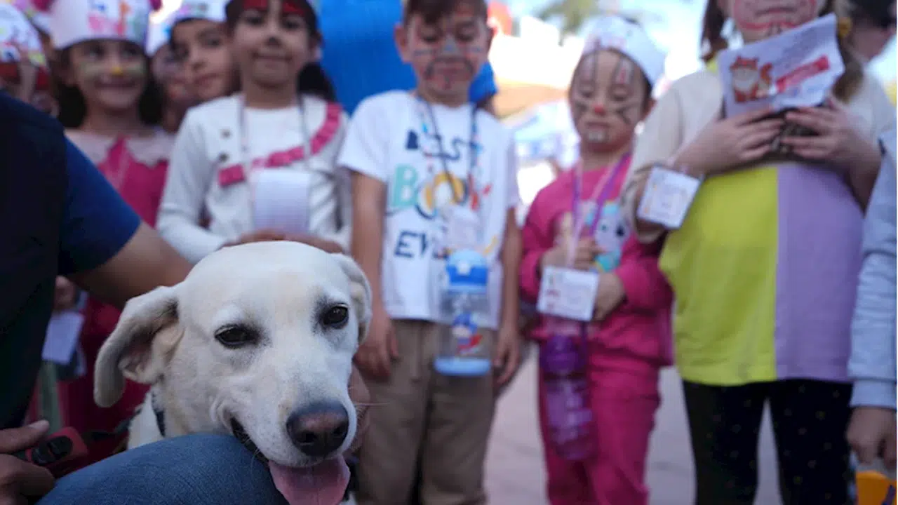 Patlamış mısır, pamuk şeker, hayvan figürlü yüz boyama ve balonların dağıtıldığı etkinlikte çocuklar, sahipsiz hayvanlarla bir araye geldi.