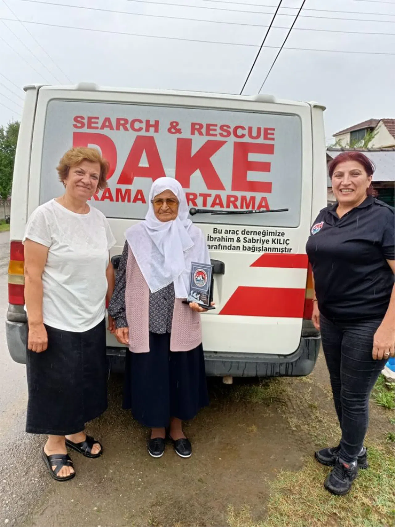Aracın, DAKE'nin faaliyetlerinde kullanılmak üzere hazır hale getirilmesinin ardından Demirağ'ın yaşadığı köye gelen AFAD Düzce İl Müdürü Ali Kartal ve DAKE gönüllüleri, plaket ve çiçek verdi.