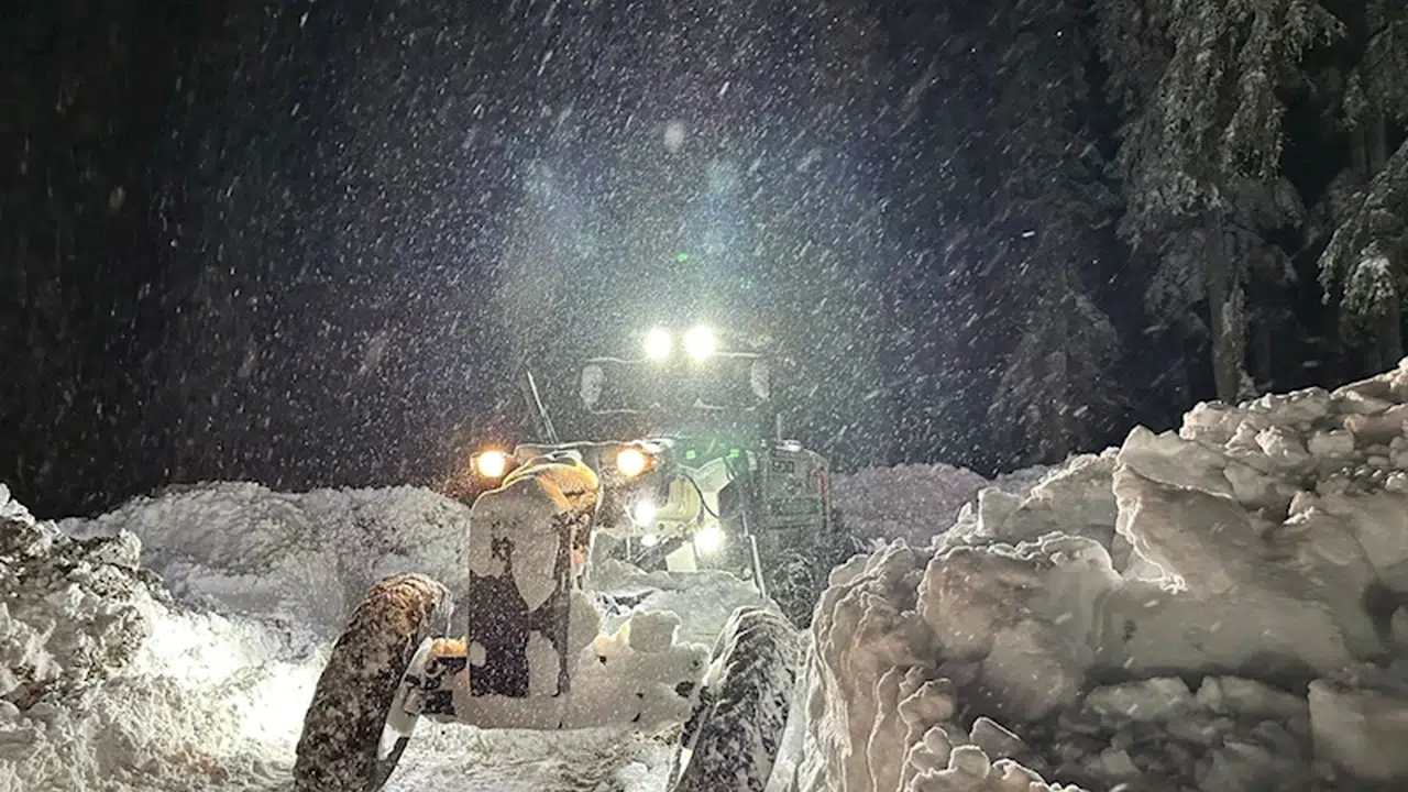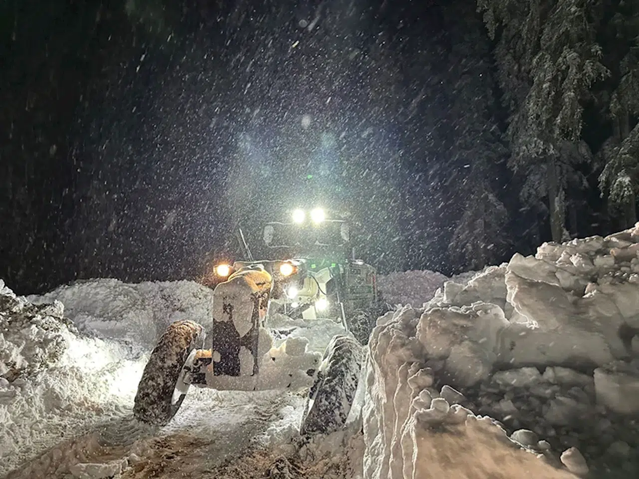 Greyder, İl Özel İdaresine ait iş makinesi ve 4 arazi aracıyla bölgeye giden 12 kişilik ekip, çalışmalar sonucu araçları bulunduğu yerden çıkardı.