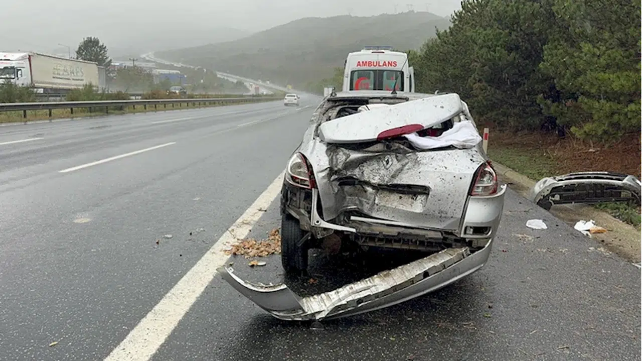 Kazada yaralanan sürücü ile araçta bulunan H.K. ve Ü.Ç, ambulanslarla Düzce'deki hastanelere kaldırıldı.