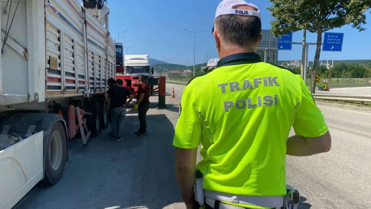 Muhammet D. yönetimindeki 81 EN 432 plakalı sac rulo yüklü tırın lastiği D-655 Düzce-Zonguldak Batı Karadeniz bağlantı yolunun Çamköy mevkisinde patladı.