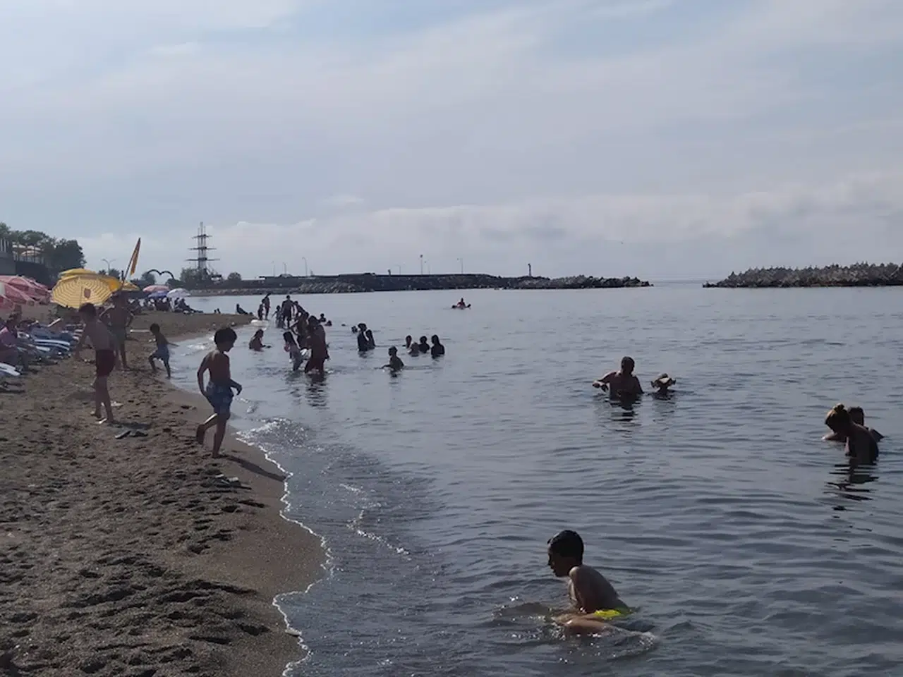 Yaz tatilini ilçede geçiren ziyaretçiler, denize girerek serinledi, sahilde güneşlendi.